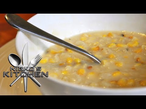 hi everyone and welcome to Nicko’s kitchens fast food Friday today we’re going to be making a really easy quick and best of all healthy dish and we’re gonna be making corn chowder he’s got budget meals Monday what you want Wednesday fast food Friday what else could he share it’s Nicko’s kitchen where satisfying meals so that’s the first thing that we’re gonna do is just add some olive oil to a large stockpot and to the pot I’m gonna add one large brown onion that I’ve just roughly chopped up cook the onion just until it goes soft it should take about two minutes now once they’ve softened up guys I’m going to add in some vegetable stock now if you want to use chicken stock go ahead but I do find vegetable stock works best for this dish and I’m also going to add in some water and of course I’m gonna add in some creamed corn also some corn kernels and of course the season with some salt and some pepper and just give it a good mix through now guys what I want you to do is bring it to the boil put it on high and bring this to the boil once it starts bubbling away on the top then turn the heat down it should take about four to five minutes so now that our corn chowder is bubbling away I’m gonna turn the heat down to a medium heat just give it a good stir now guys this is optional you don’t have to put this in but I find it gives it a really really awesome flavor and it just lifts the whole dish I’ve got some sesame oil and be very very light with it not too much but just a few drops in there and lastly I’ve got some shallots here now shots are a relatively onion family but there are a lot sweeter if you can’t find them you can leave them out just add little bit more of the brown onion that we did at the start now this stage guys if you wanted to being a chowder you could add some cooked bacon if you wanted to or even some cooked potatoes if you wanted to as well I’m not going to but there’s some variations you can do with this so just for another minute longer guys on a medium heat just until those she lights soften a little and then we’re gonna serve this bad boy up and just over the top guys I’m gonna finish it off with some more of those shallots and on the top I’m just gonna finish it off also with some fresh coriander and then you have a guy’s Nikko’s corn chowder it is absolutely sensational it is thick it is hearty it is healthy and it is fast oh let’s give this a go mmm that sesame oil really brings that alive it is sensational the sweetness of the shallots the crunchiness of those corn kernels the creaminess of the creamed corn that is awesome as always the ingredients are below so check it out please give this a go you will not be disappointed you guys take care and I’ll see you this Monday for budget meals until then take care [Music]