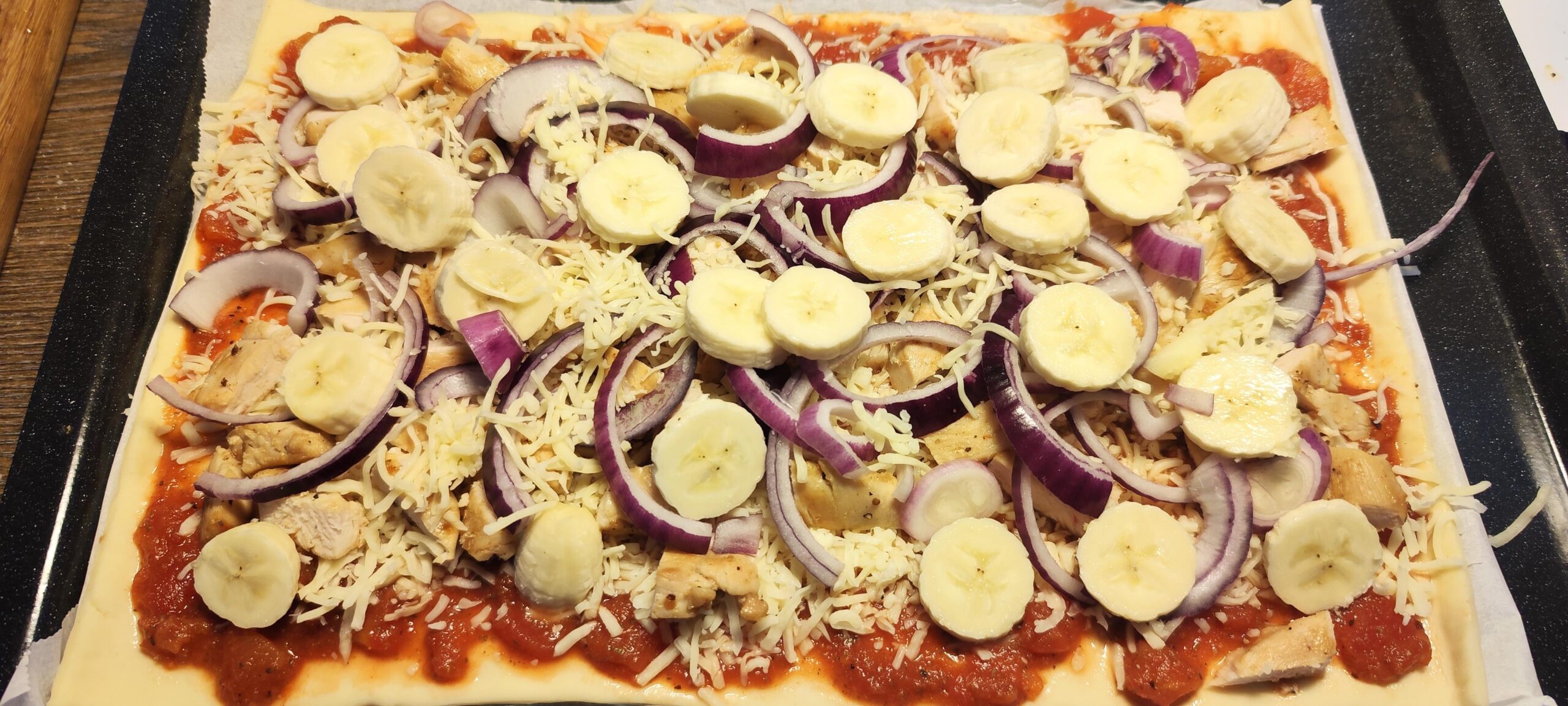 Curry chicken with banana and Mangoraja sauce is a match made in heaven, peanuts goes well on too