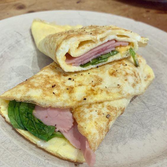 Egg omelet, with ham, cheese and spinach, simply delicious.