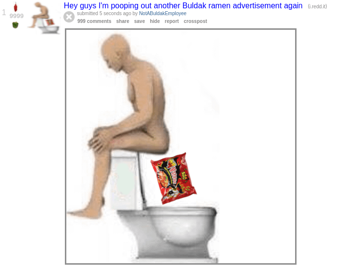 Buldak and poop post combined? Op knows how to meta.