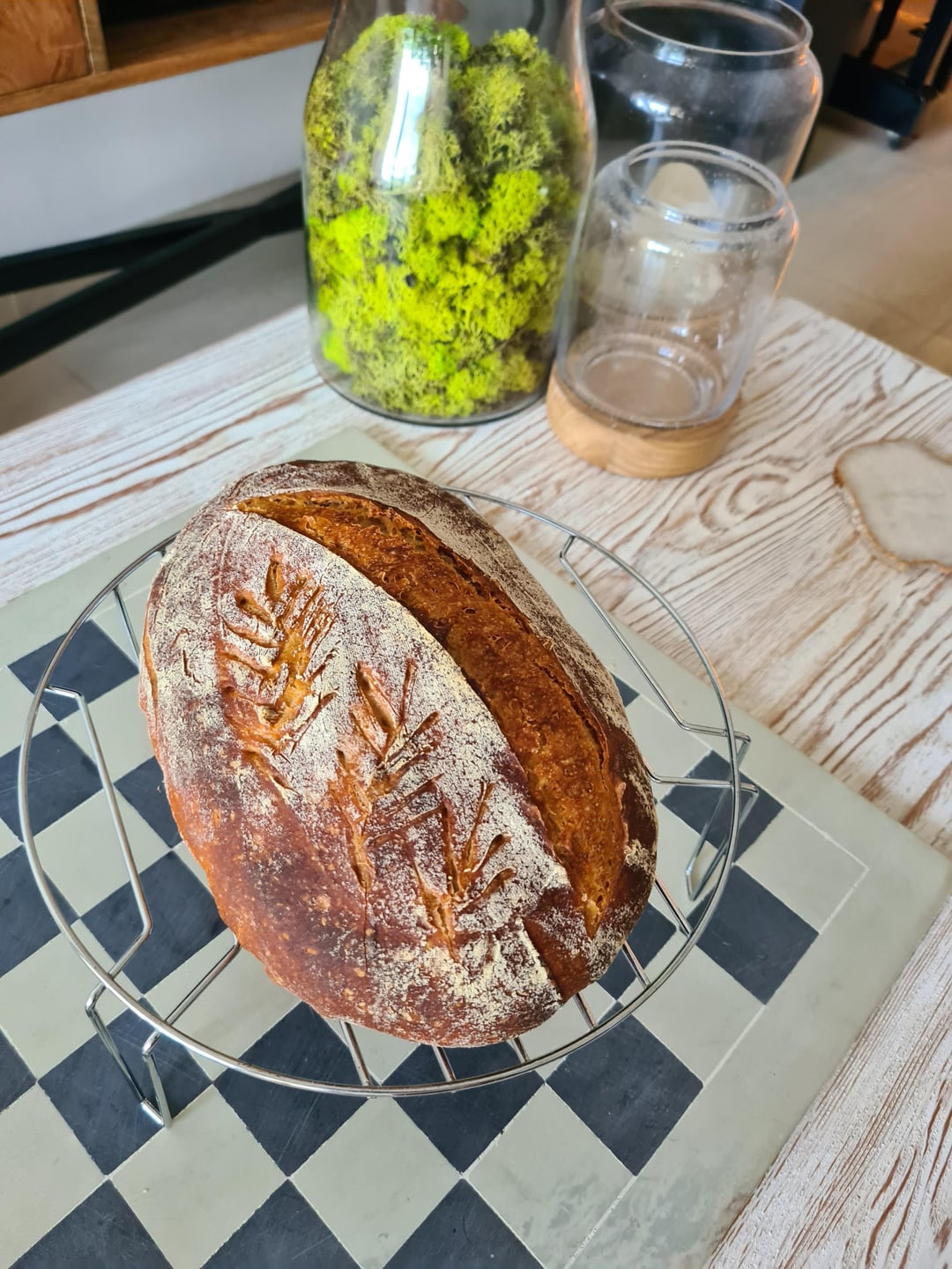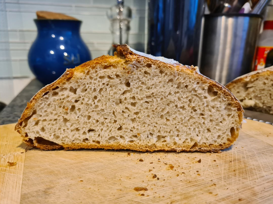 This is my second attempt. The first one didn't rise well, I think because it was over hydrated.