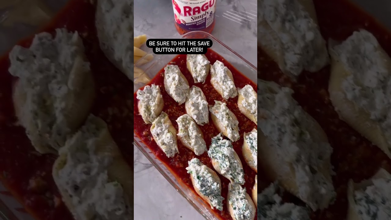 if you’re eating a chloric deficit and trying to hit your daily protein goal you’re going to love these stuffed pasta shells I tell my lean clients over and over you’re making it harder than it has to be you do not have to radically change the foods that you eat and love you just need to make a couple of tweaks in the way you’re making it in order to help it fit your calories and macros and that’s what I did here I subbed out some of the ricotta cheese for some Blended cottage cheese and added some ground meat in order to bump the protein up and reduce the calories I also made some without spinach in order to keep my family happy so we’re all eating the same thing and I’m still able to manage my calories and hit my protein goal I’ve got the full recipe in the caption below and be sure to save this one because everyone is going to love it