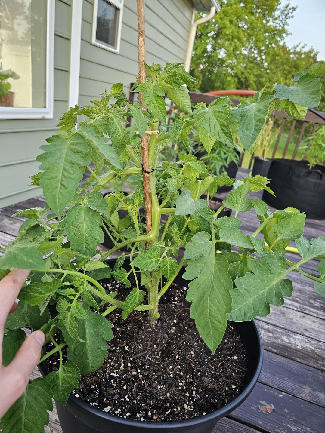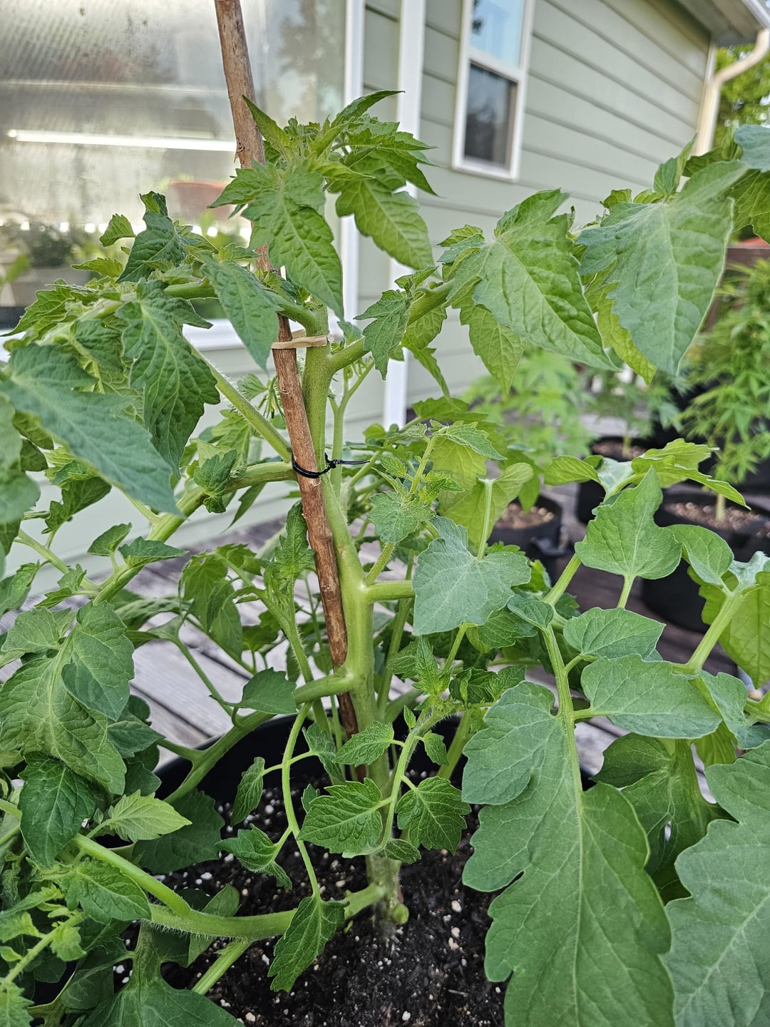 I prune off the suckers I won’t be able to provide support for. Do you know if indeed this is an indeterminate variety? If so, have you considered staking or caging it? It possibly could get over 8’ tall with lots of side stems.