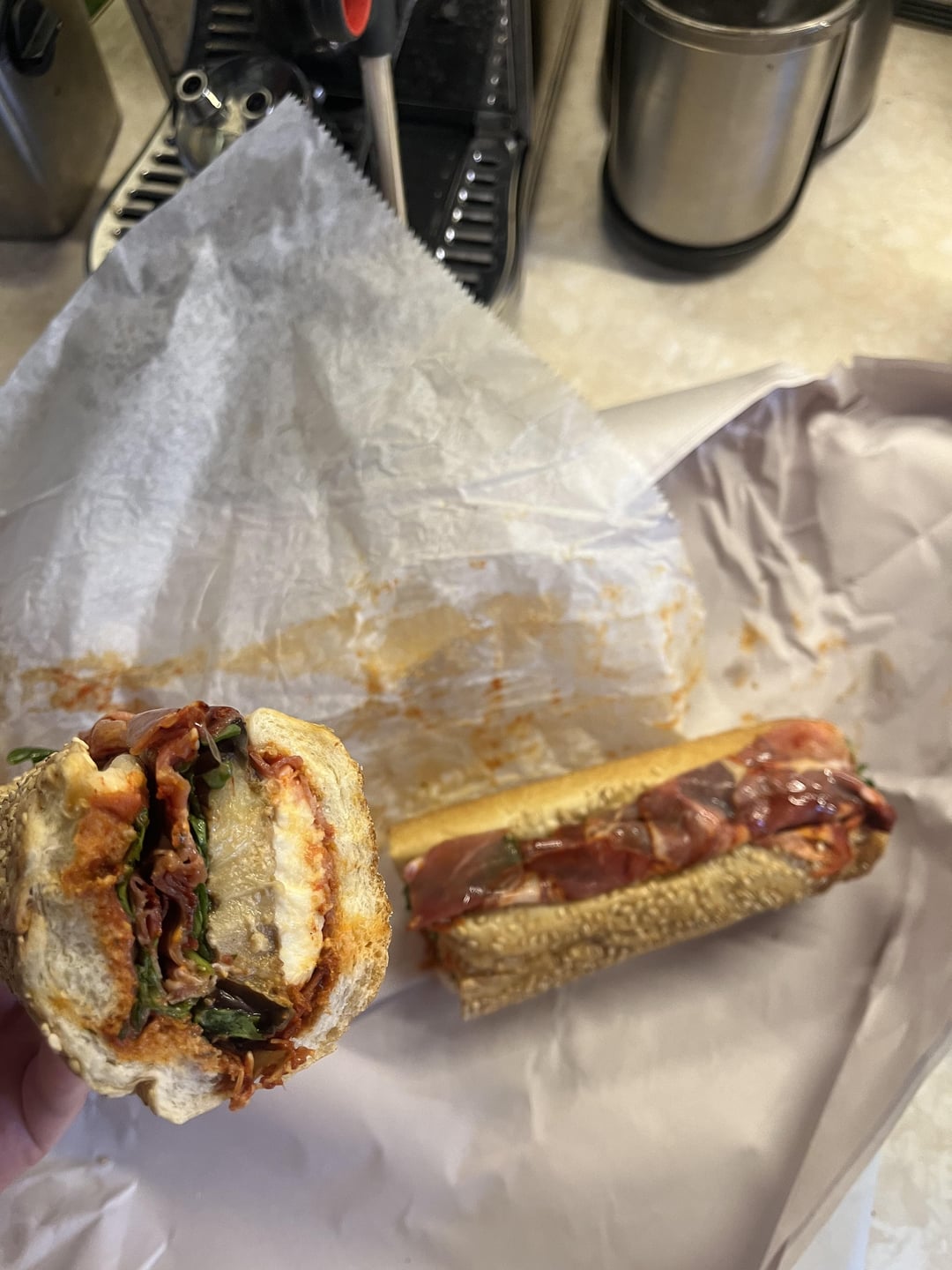 Presumably inspired by the Italian sandwich at Casa Della Mozzarella in the Bronx, which is one of my favorite sandwiches ever. Ingredients on second slide.