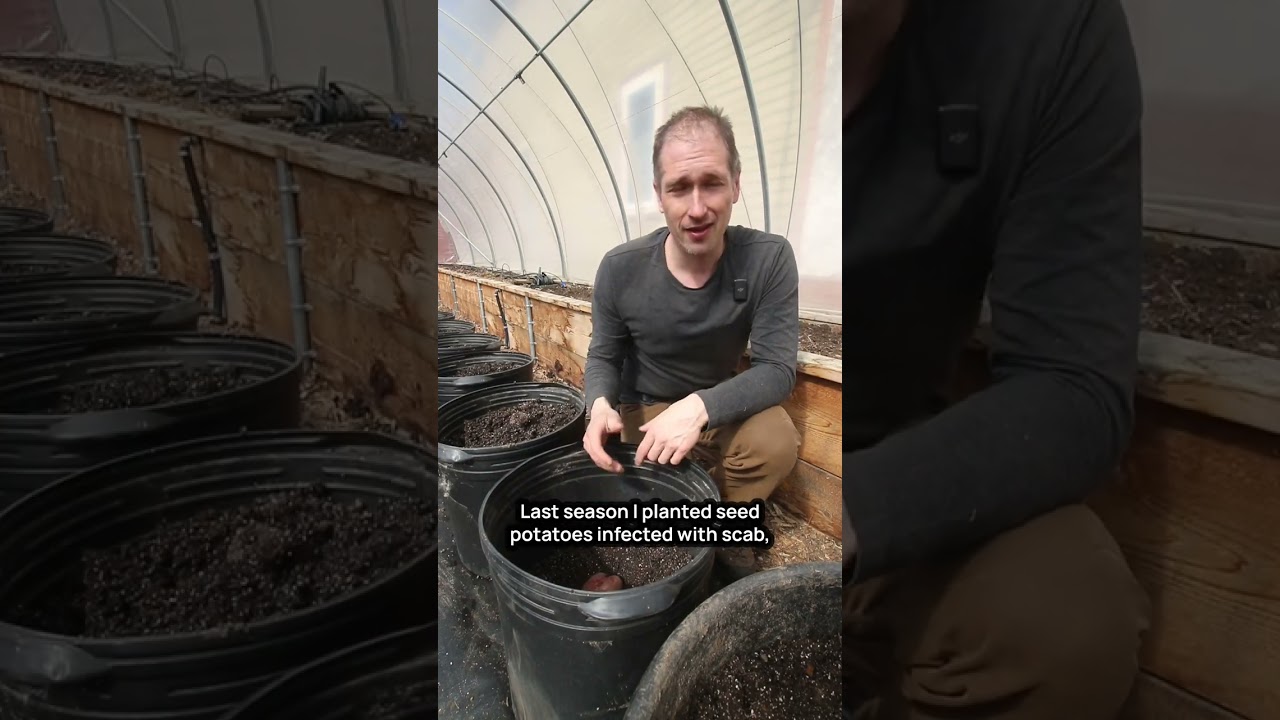 It generally makes the most sense to grow potatoes in the ground but here are three cases when it might be reasonable to grow them in containers one case is to avoid scab potatoes are really susceptible to Common scab when grown in soil with a high pH but by growing potatoes in potting soil with a lower pH we can avoid this problem altogether last season I planted seed potatoes infected with scab and dug up nothing but 100 scab free potatoes at Harvest Time the second case is to grow potatoes that are portable a really early potato crop is a great way for us to make use of warmer spring temperatures in our high tunnel but we don’t have enough time to grow a full potato crop to maturity before our heat loving crops need this space with container grown potatoes though timing isn’t a problem when our tomatoes and peppers need the high tunnel we can just move the potatoes out to the field to grow to maturity and the third case is obvious if you don’t have access to land and you still want to sink your teeth into some fresh home-grown potatoes then know that you can still accomplish this with containers I’ve published the results from last season’s container potato growing trial on our website you can find a link to that in the description