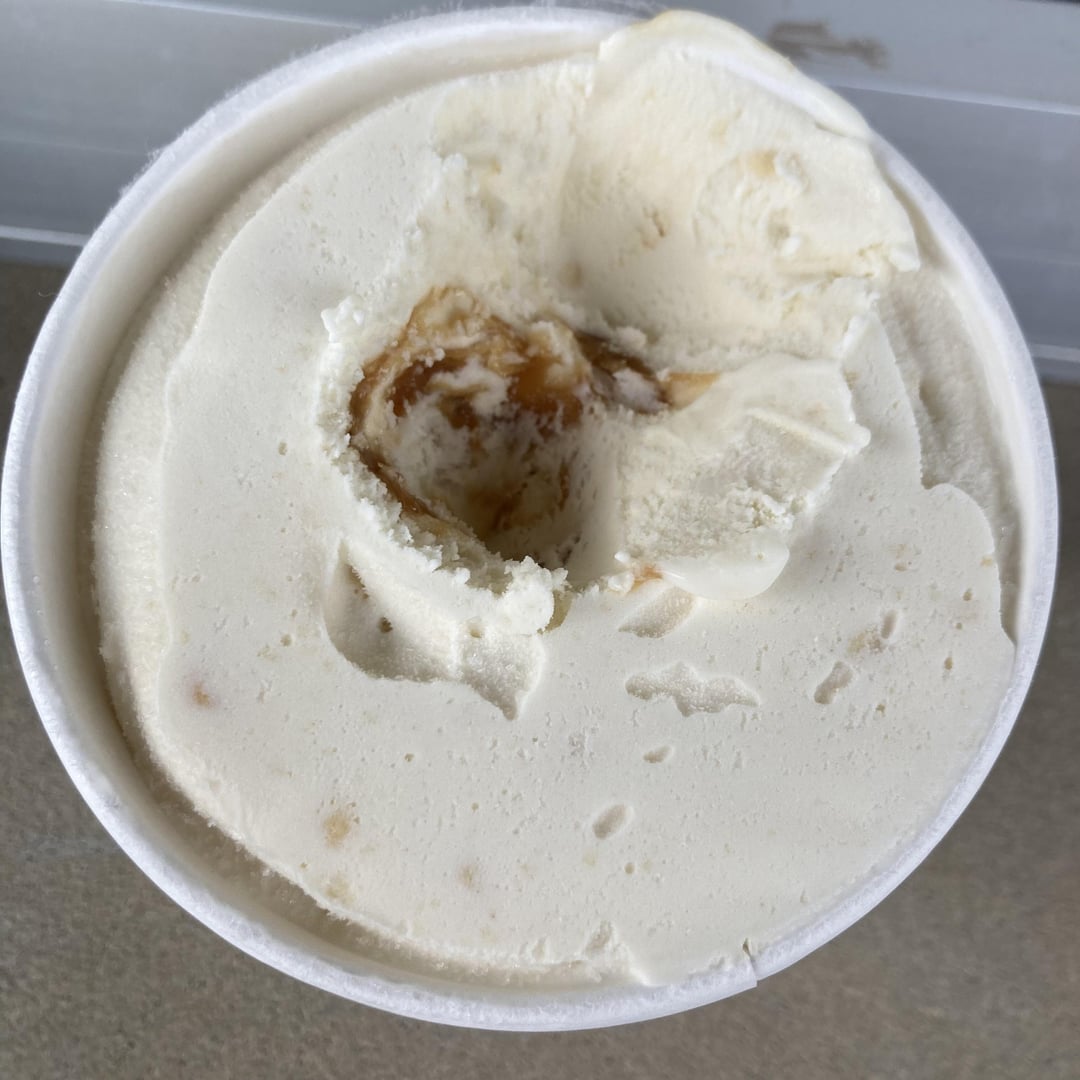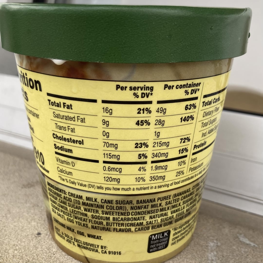 Once dug into, Trader Joe’s Banana Pudding seasonal flavor (available until June) delivers on its description of “salted caramel swirl and vanilla wafer cookie pieces”—for the most part.