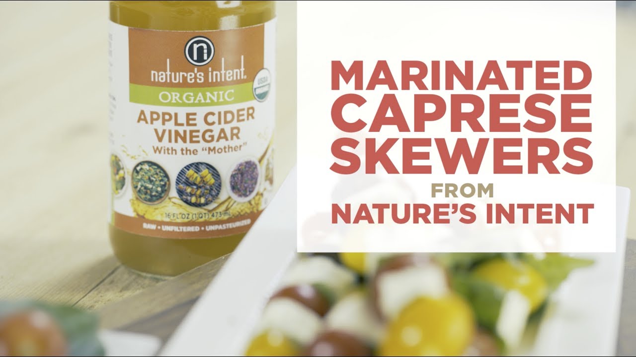 Perk up your picnic table with Marinated Caprese Skewers. Nature’s Intent® Organic Apple Cider Vinegar, olive oil and oregano are all it takes to create a quick and simple marinade. Drizzle over layers of fresh mozzarella, basil and sweet grape tomatoes and get snacking. Great as a side dish or as an easy appetizer—whichever way you crave.