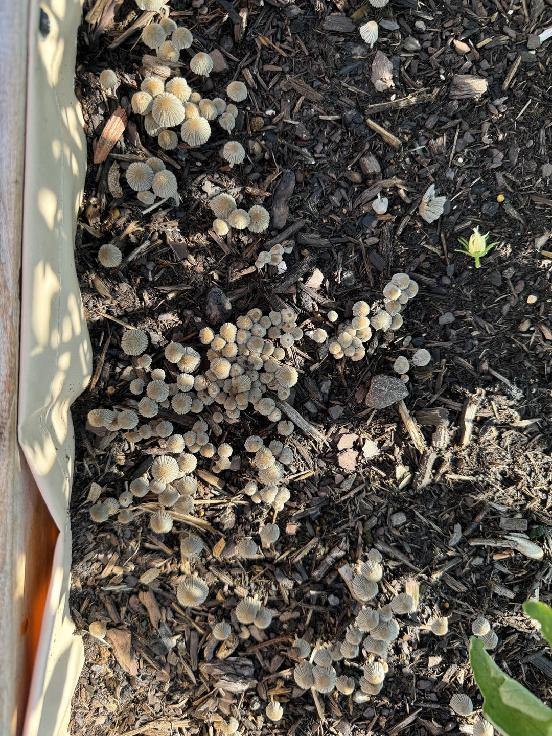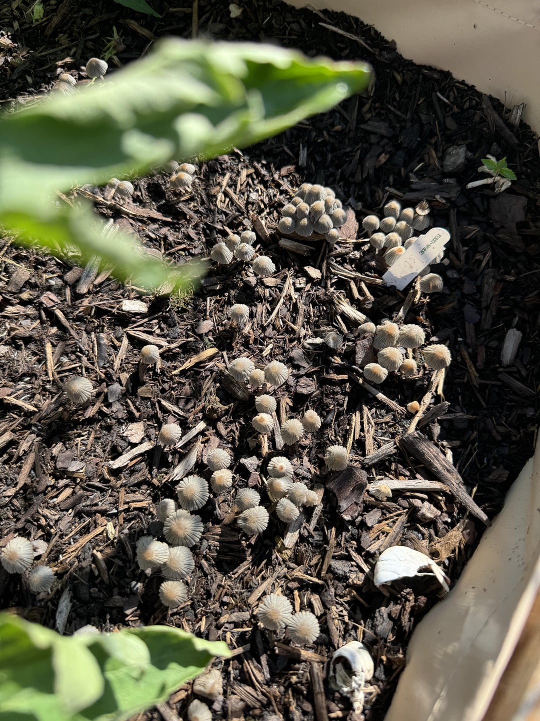 I found these growing near my tomato plant and I’m not sure how to deal with them, we have had a lot of rain the past few weeks but I wasn’t expecting these to show up??