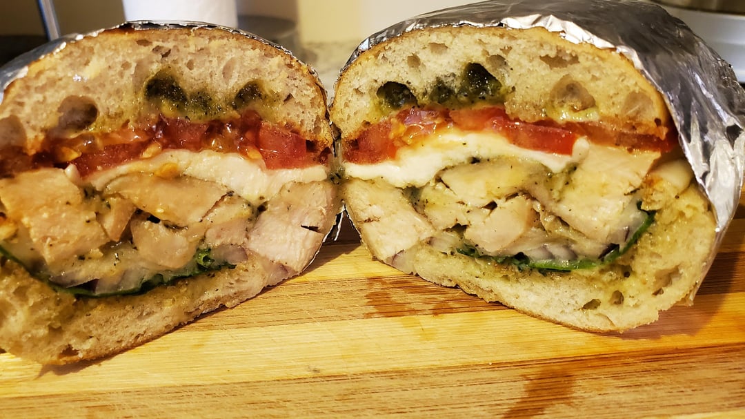 Grilled chicken sandwich with basil pesto sauce and mozzarella. by mayiplease2564 Write A CommentYou must be logged in to post a comment.
