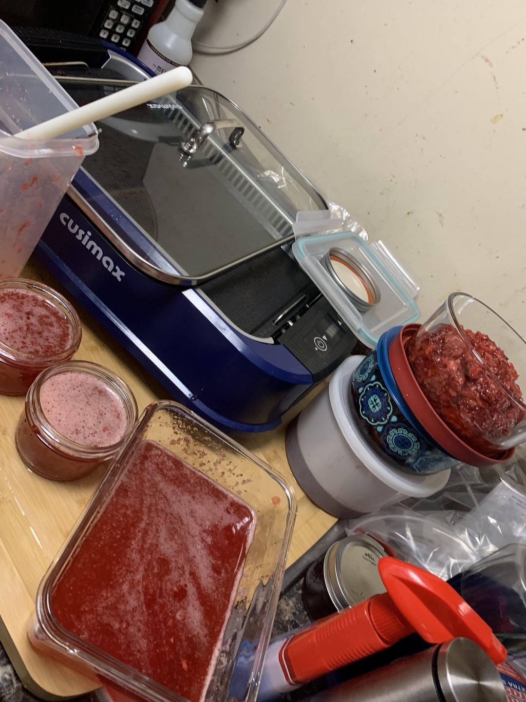Excuse the mess I did a ton of cooking today. But I made blueberry and strawberry cheong and it’s finally done and Tastes amazing. I’m going to make something with the solids so I saved them and the syrup is amazing and fresh. Totally worth the Wait. Gonna make some peach soon and I needed this to work and it did
