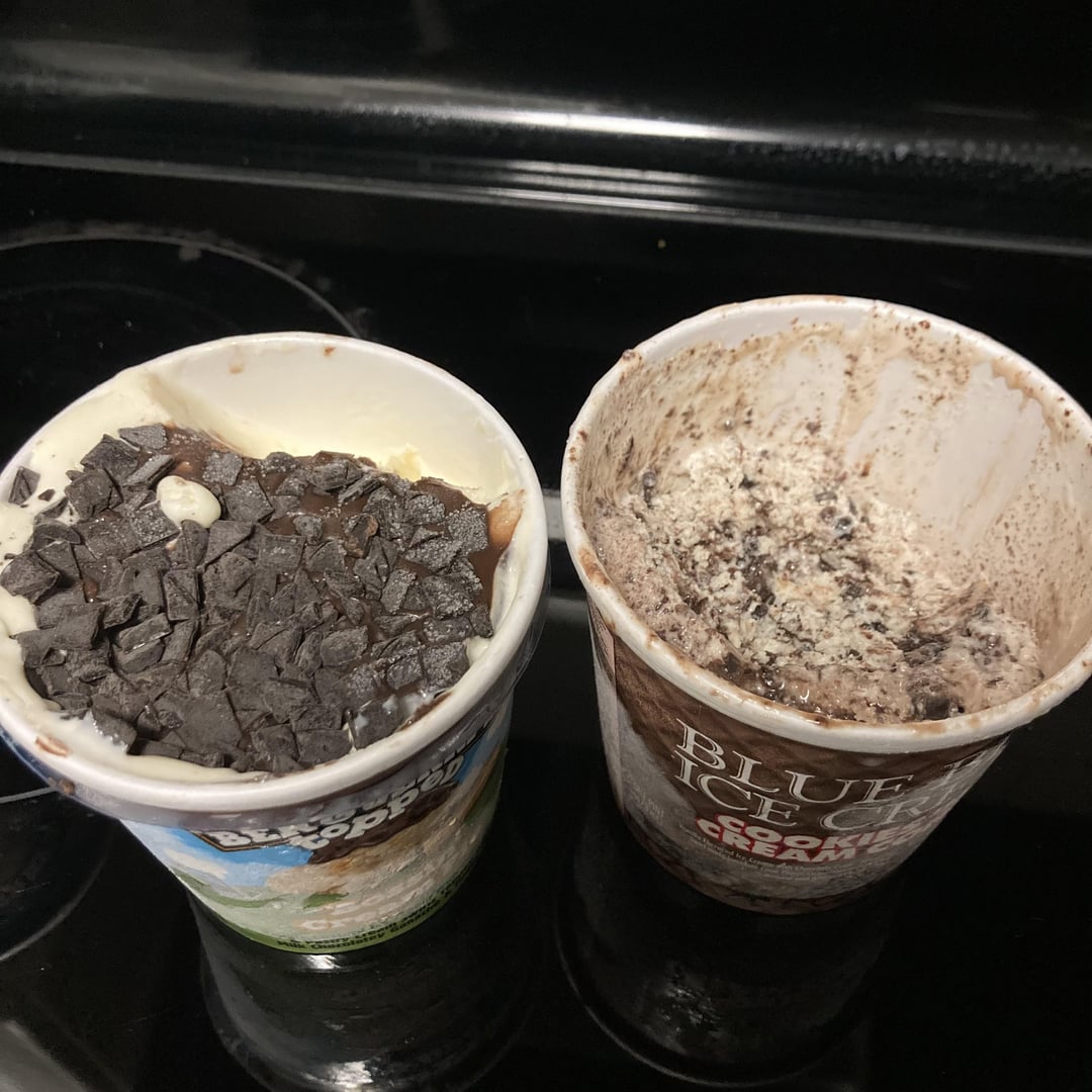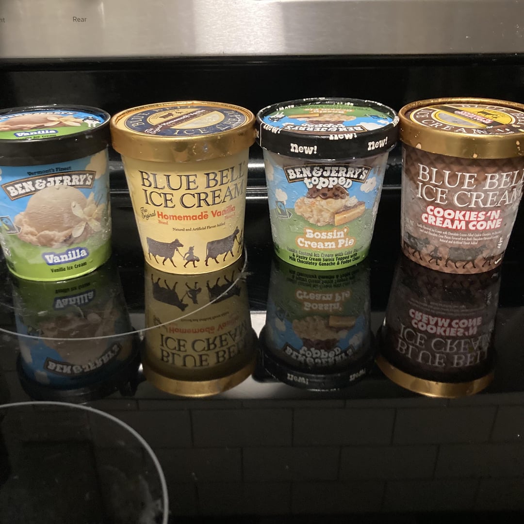 Yesterday bought four ice cream pints (last pic), two Blue Bell and two Ben and Jerry’s. It’s my first time buying Blue Bell so expectations were high but this Cookies n Cream Cone (ranked S-tier ultra top 5 YouTuber Cohen Thompson) fell short. Big caveat: it melted. Perhaps this isn’t a fair review. I suspect it still wouldn’t be my favorite flavor regardless.