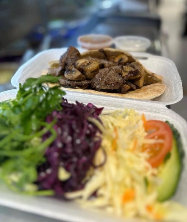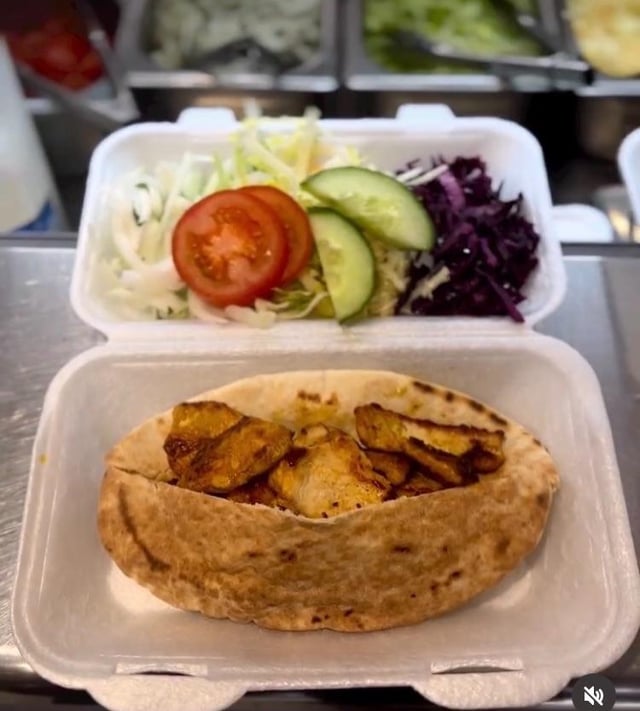 Chicken/beef steak shish kebab box, reckon 500-700 with chilli sauce?