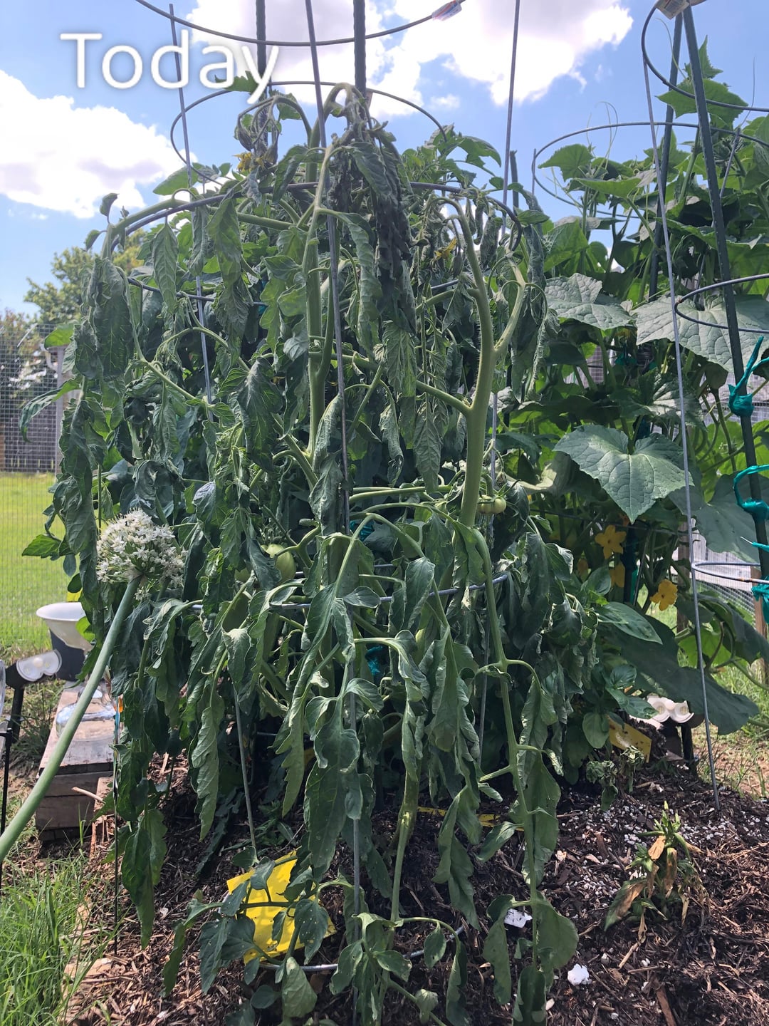 Zone 8, west TN. Yesterday I found my Steak Sandwich Hybrid, (much smaller than this Purple Cherokee), completely dead laying flat on the soil. I noticed this tomato plant starting to wilt, mostly at the ends, then today it looks almost completely gone! It was a really hot day yesterday so I thought maybe it needed a little water (despite it raining tons for the last couple weeks) and was overheated so I watered it a bit. I’m not sure what happened and I’d love to save it if possible. I only have 1 other tomato plant now, an Early Girl, so far she looks great. I’d love your input, thank you!