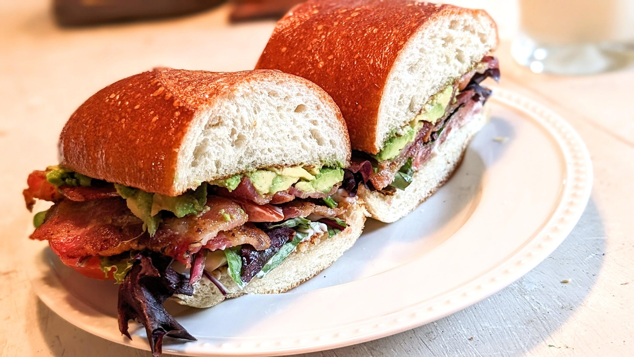 Mixed greens, bacon, avocado and tomato on garlic butter toast French bread. by KelVelBurgerGoon 1 Comment dropsoficarus 1 year ago Hell yes.Write A CommentYou must be logged in to post a comment.