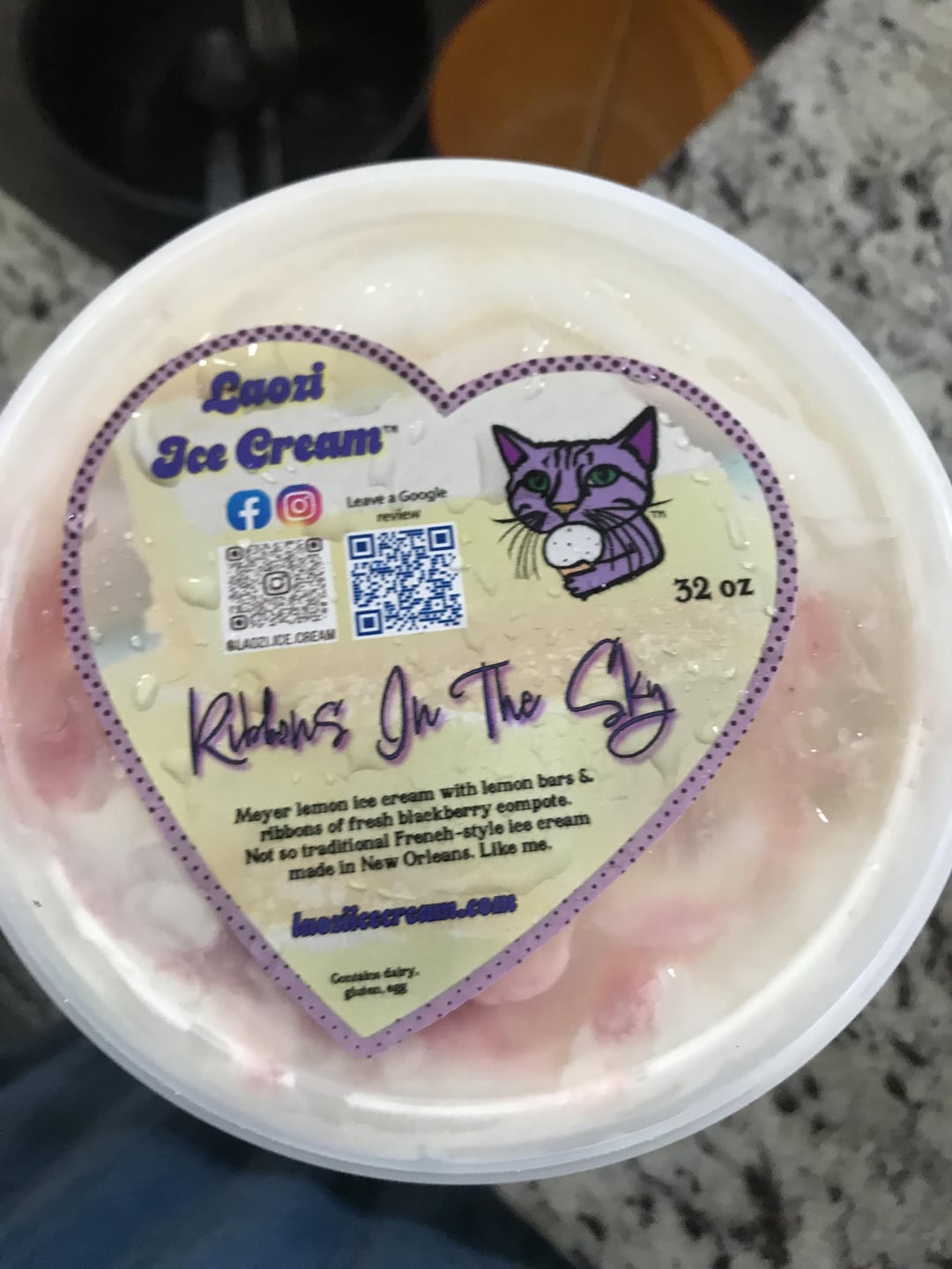 Laozi Ice Cream in NOLA – “Ribbons in the Sky” Meyer lemon French ice cream base with lemon bar pieces and a blackberry ribbon swirl. Delicious by blipblapblop24 1 Comment ash0000 2 years ago That might be the best sounding ice cream I’ve ever heard of.Write A CommentYou must be logged in to post a comment.