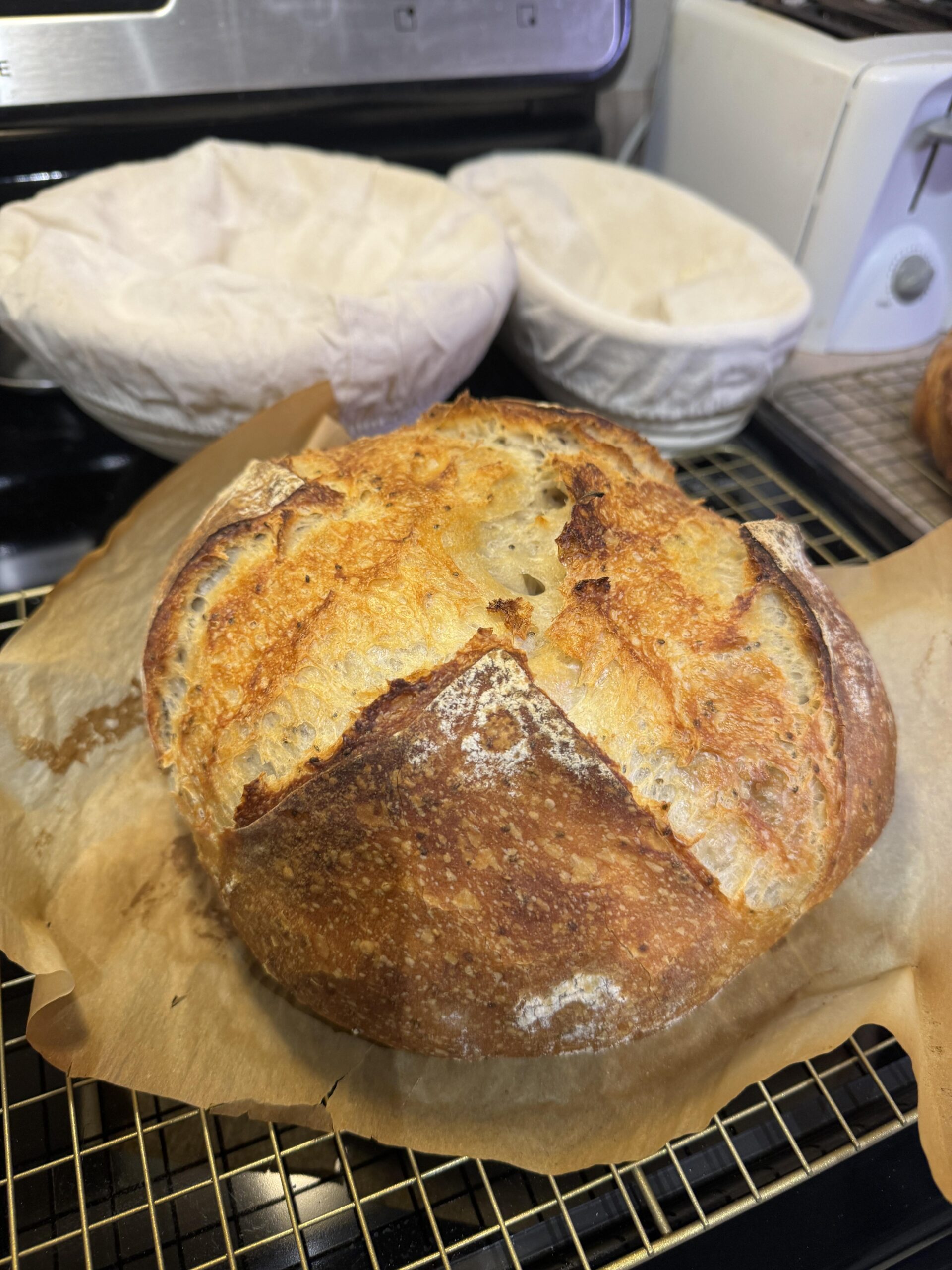 But have to wait till i’m off work to go home a cut it:/ My sister had a large Dutch oven that she’s never used and gave it to me😁 so instead of my usual makeshift dutch oven (a pizza stone and upside -down stock pot) I finally used a proper Dutch oven and it really made a difference for achieving more oven spring.