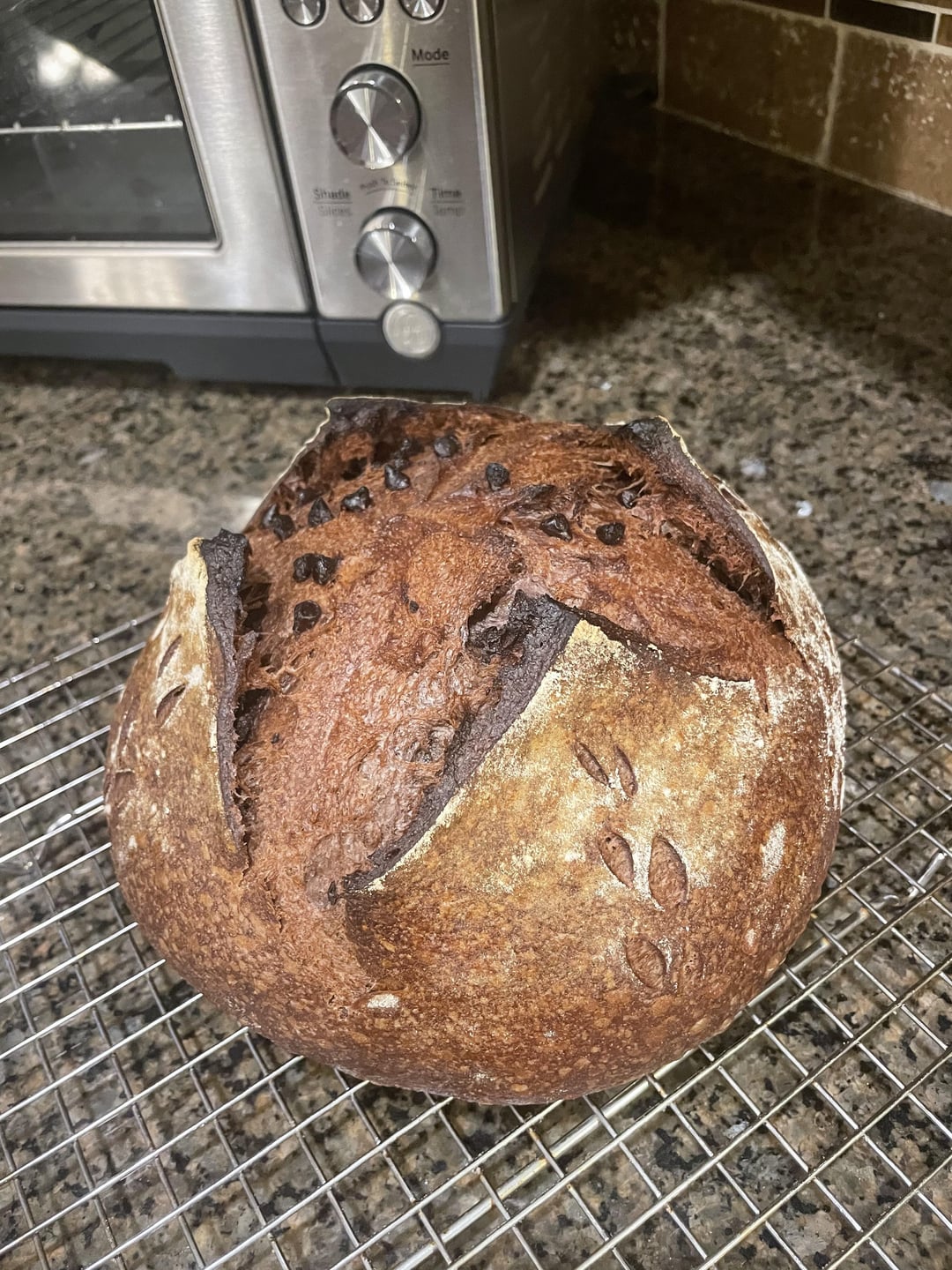 I used 250g of whole wheat and 250g of bread flour for more texture. Additionally, I cold proofed the dough for 3 hours instead of just one hour at room temperature. For a chocolate loaf I didn’t want to cold proof for too long since it doesn’t need the sour taste necessarily.