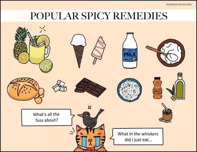 I don’t think I get the point of a “remedy” for spicy food. Isn’t the burn what we’re all chasing? Isn’t that the point of eating spicy food? If you accidentally make something so spicy you can’t eat it then you either have to cut your losses, or tough it out and in the process jack up your tolerance by a couple notches.