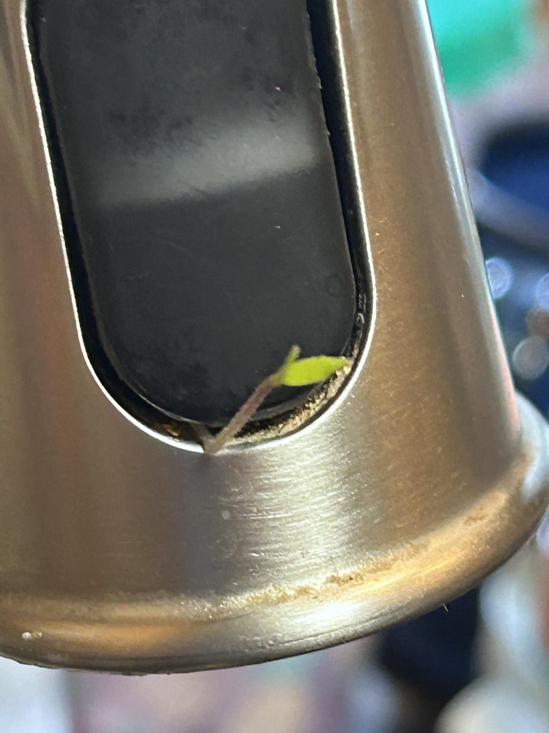 I processed a lot of tomatoes last summer/fall. A few weeks ago, I found….a tomato seedling growing from the groove in the button on my kitchen faucet. A seed must have gotten lodged in the crevice and finally germinated. I swear I clean my kitchen, yes this is both cool and gross, and I understand if you judge me. But you gotta love the resilience of these guys! It is currently in a pot in my garden, growing like a…well, tomato!