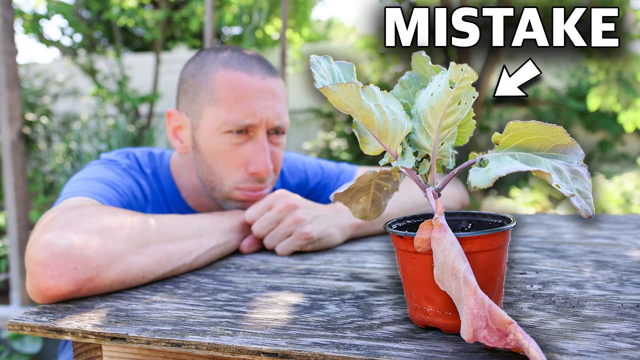 today me and tuck are going to share with you 10 mistakes you cannot afford to make when growing a garden let’s go the first mistake is starting too big it’s better to start a small garden grab some Harvest like we will right here and feel like you can do more let’s grab some of this lettuce Right Here Wanting to do more because you start a relatively small garden and feeling like you want to expand that’s encouraging but starting a big Garden that you can’t keep up with that’s discouraging and it won’t motivate you to continue growing more year after year so you can learn a lot from a little garden that will prepare you for a bigger Garden in the future the next mistake is growing What I Call Advanced varieties when you first start gardening simple and easy is best growing some hybrid veggies for instance the super sweet 100 tomato is easy and reliable to grow as opposed to growing an heirloom variety that’s kind of tough to grow like the of the night tomato also look into growing some varieties of crops that produce quickly for instance this early Jersey Wickfield cabbage only takes about 60 days from seed to harvest while this dead-on seavo cabbage takes about 105 days from seed to harvest shorter time to production means less time for problems to occur another mistake that almost all new gardeners make is starting seeds too early when your plants have to sit and wait in a pot for the weather to warm up they can get stressed and rootbound this Braska right here is the same age as this cabbage you see right here look how much healthier this one looks I just didn’t have space to put this one in the garden but when you start plants too early it can just cause a lot of unneeded stress if you did start your plants too early you don’t want to make the additional mistake of planting out too early a couple of nice days can really trick you here we had a few days where it was like in the 80s during the day and then in the 60s at night so I kind of wanted to press my luck a little bit and get some tomatoes in early as a result this tomato got a little too stressed because it dropped into the 40s a few nights after that that’s okay though because I have about four or five backups for every single variety that I have so if you do want to press your luck and start some stuff early make sure you have backups or some plan or way to cover your plants if a cold snap comes a mistake I often see beginner gardeners make is planting too densely it can be kind of confusing trying to plant out a whole bed with proper spacing that that is why I love using the square foot method that’s why I have these squares here lined up with the string the square foot method allows me to grow the most amount of food in the smallest amount of space while not overcrowding things and still getting good production if you’re going to push the limits and plant stuff close like I do you don’t want to make the mistake of not providing your plants with a proper nutrition with some good fertilizer so I like to use something as simple as an allpurpose fertilizer like you see here or even a a fish fertilizer if you want to use a liquid fertilizer like you see right here plants that are healthy and vigorous can fight off Pest and disease better look at some of these plants look at the color look at the health so providing your plants with the right amount of nutrition especially when they’re densely planted is super important look at this lettuce down here healthy plants you love to see it when I first started gardening I made the common mistake of not having a Pest Management plan when you first get going you’re worried about what to plant when to plant how to plant the last thing you want to think of is pests but the reality is they will come in so the best way to deal with them is actually to prevent them in the first place my favorite way to prevent pests is with something as simple as just an insect netting so protection of your plants is key something like this just makes a massive difference now the Cabbage White Butterflies can’t come in and no cabbage worms on my young plants if you have plants that are going to flower like cucumbers or something just make sure you take the insect netting off when they start to flower so they can get pollinated another advanced form of protection that I like to use is known as surround kin clay I have to spray this white clay on my apples and a lot of my fruits because the plum culio a bug comes in and attacks them so this makes it so I don’t have to kind of manage them I can prevent the issues by protecting my plants come over here if you didn’t do a good job protecting your plants there are always some ways to deal with the pests after they’ve arrived for instance if you want to deal with something like worms um say cabbage worms or even tomato horn worms BT and spinosad are great options for that if some of your issues are like soft bodied insects like white flies or aphids then something like the safer soap is a great choice and so is the neem oil so there are plenty of organic options to manage some pests when they come in just have a Pest Management plan and some ideas going into the into the scenario instead of having to like rush around to try to find a way to resolve an issue if you can though prevention is always the best another mistake new gardeners make is allowing plants like tomatoes and peppers to sprawl along the ground instead of growing them vertically up a trellis growing up a trellis not only makes plants easier to harvest and manage it also allows the plants to get more air flow and more light penetration which leads to less disease issues let me show you how I tie up my tomatoes I just grab these clips which are really nice push it against the string and then clip it around the Tomato just like that growing vertically is so convenient and has so many advantages when the summer heat comes keeping up on watering can be especially to