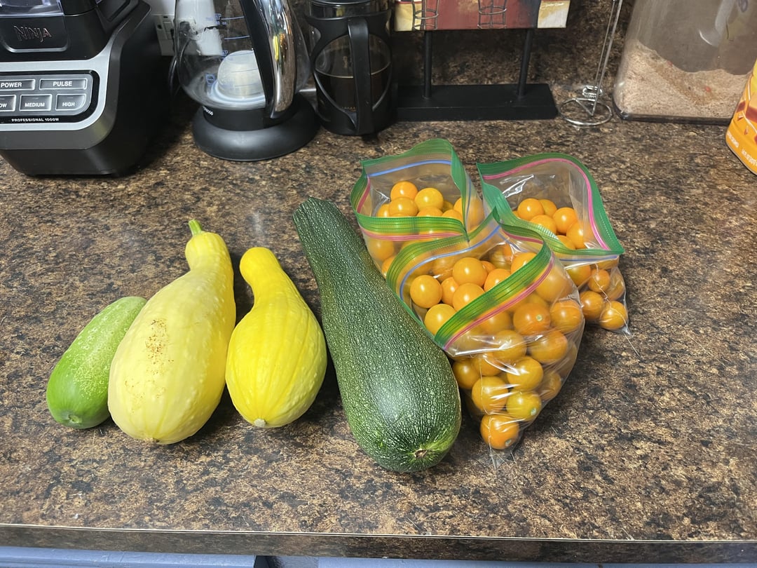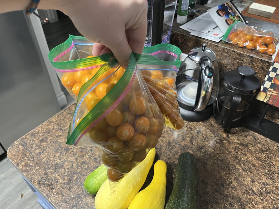 I took 1 cucumber from my plants today. It was about a pickling size cucumber (hoping it might spur on more female flowers but that was the first thing I’ve cultivated). I also have a determinate cherry tomato plant who has a first sign of red emerging overnight.