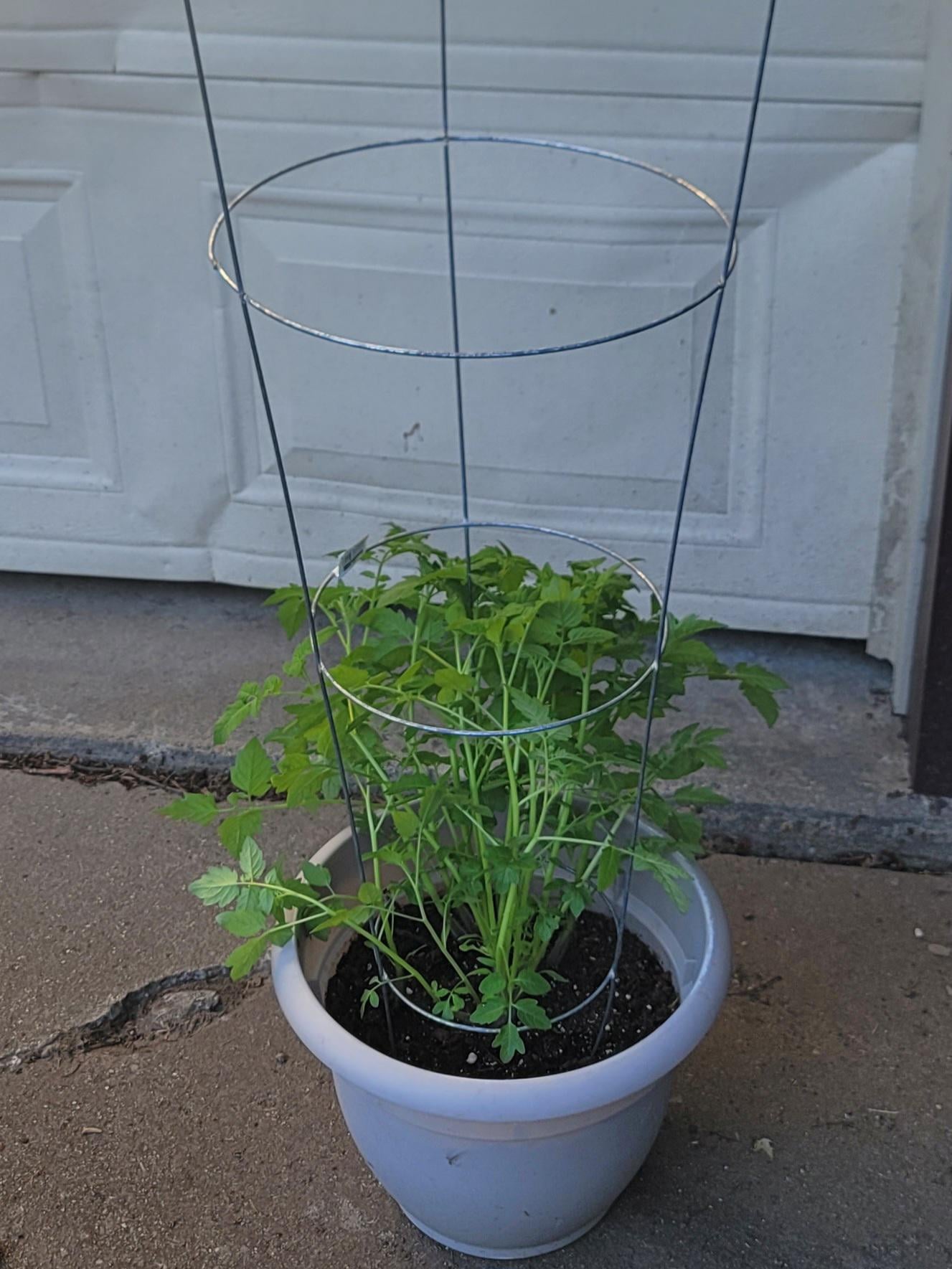 Tomatoes are a vine. Looks like the plant stretched due to lack of sun.