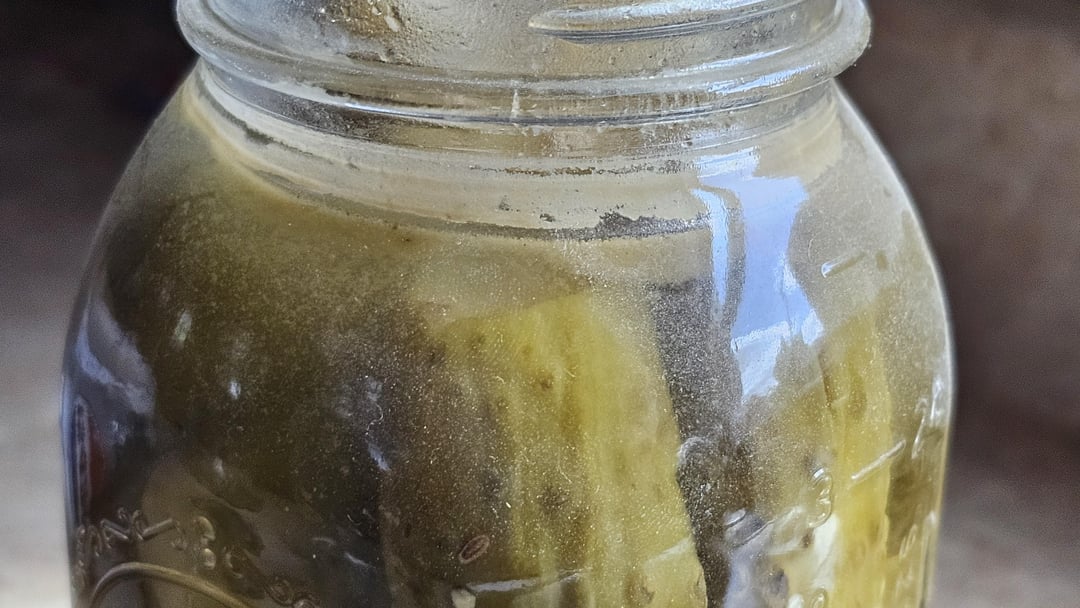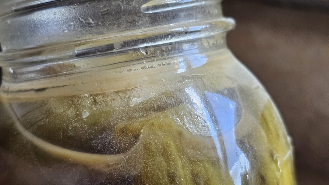 My step father passed not long ago and was really into canning. We have been going through all the stuff he canned. We pulled all the pickles out he canned about 4 years ago and there was this green slime rining the top of all the dill pickle jars. Are these safe to eat or are they bad?