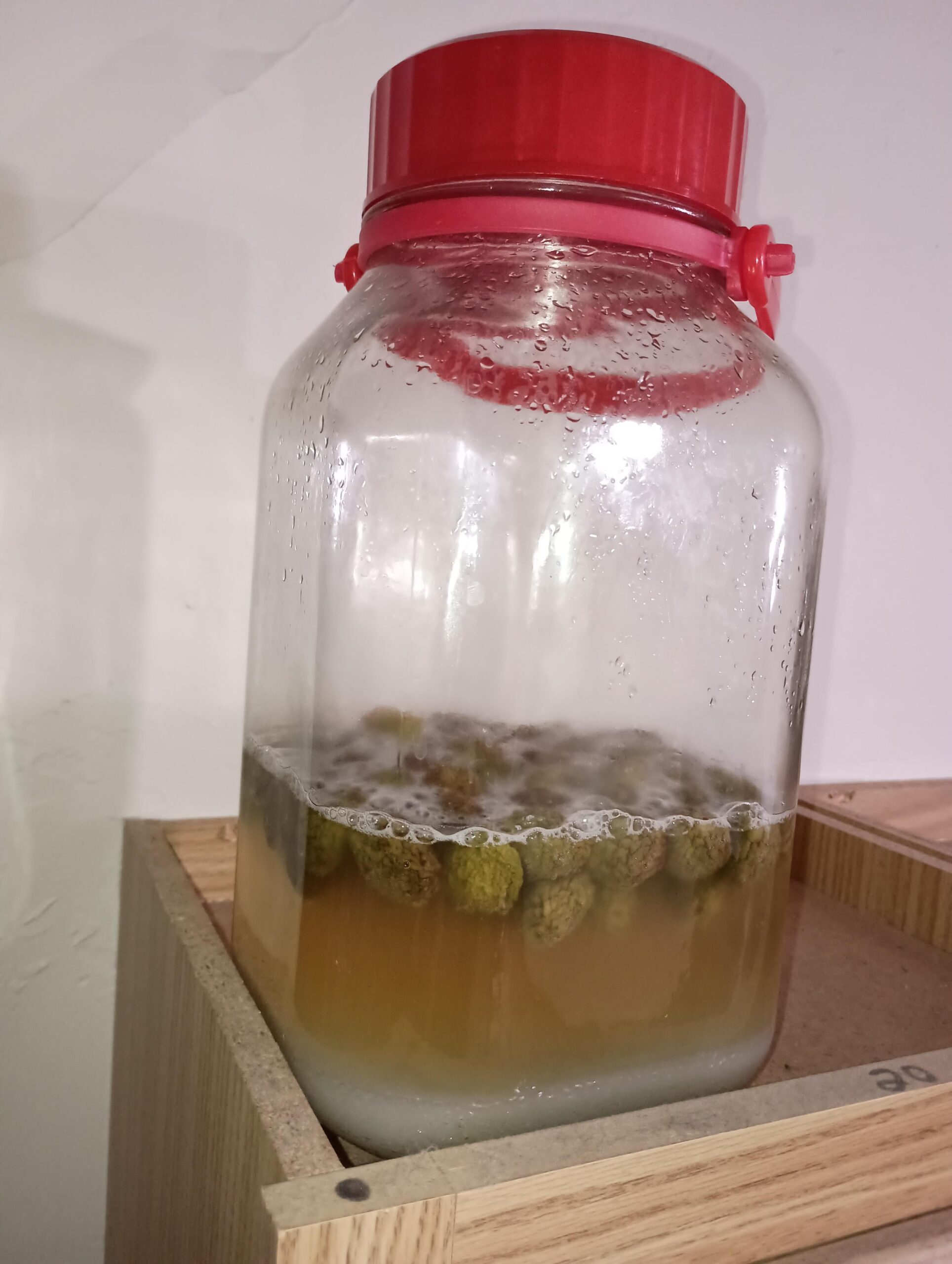 I started Maangchi's recipe two weeks ago, and this is what it looks like. There's some bubbling, and there's still a lot of sugar at the bottom.by ResearcherHorror120 1 Comment ToastedSlider 2 years ago Looks like it’s going good. You can give the bottom a stir every other day if you like.Write A CommentYou must be logged in to post a comment.