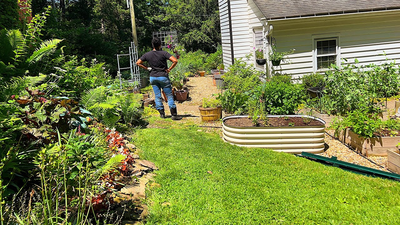 for [Music] hey guys thank you so much for watching let’s do a raised bed garden tour so we’re going to start on this side of the garden and we will start right here with this basket so last year I planted lemon bomb in this basket and this year um because lemon balb is in the mint family it came back it overwintered and um I’m hoping that it doesn’t spread anywhere but um worst case I’ll give this basket to the chickens and they will they’ll annihilate this lemon bomb but I mean right now it’s not an issue um I love lemon bomb and I have a lot of lemon bomb in my garden and I’ll show you that next we have this bed this is the nestum we planted together it’s doing so so well I planted this horseradish last year and the blooms on this plant have just been so beautiful I looked it up um on Google whether I should cut the bloom stocks back and just you know if it’ll focus on roots and it said um you didn’t really have to if you want to cut them cut them if not the plant will still be just fine and I am so glad I didn’t cut them because they have been absolutely just gorgeous all spring such beautiful flowers I know I’ve shared them um in other videos and they are just spectacular so down in here I planted one of my um pink blooming dandelion and I can’t wait to see what that bloom looks like we’ve got Sage under there this way I’ve got thyme here my um Ginger is planted in here I didn’t do a ton of Ginger this year because ginger doesn’t do very well for me um so I just have um two pieces that are planted there I’ve got some onions planted here that are getting blocked out by this big lemon balm which which I’m trying to see if this will Bloom for me I would love to see blooms on it so I’m kind of waiting around and then after it blooms um I’m going to Shear it back really really low but I’ll probably cut this portion here just to get more light in here to the onions um there’s another Sage another dandelion and then I know there’s some stuff back this way we’ve got some dill back here I might have to do like a a little pruning on this but definitely saving the bulk of this for to see if it’ll Bloom but I’ve got some other things back there there’s some onions um some weeds a slug G okay so let’s move on to the next bed in this bed we together you and I we planted nerum we planted onions onion sets and then we also planted sweet peas together and then some of the other plants in here like Dill tomato um there’s more Dill basil things like that were plants that I just stuck in here on my own just to give it a space and everything’s looking pretty good the onions are kind of flopping over they’re not ready to be pulled but um it’s it’s just something that happens with ions you know when a plant stock gets too tall it can be um very floppy so they’re fine let’s move on back these sweet peas are so the balloons are so pretty I’ve never had um this color Bloom before and then the pods are purple too so that adds like extra Beauty to them so here’s the bed just behind the sweet peas and this bed was one of two of my winter sewing beds and I ended up cutting the um collards out because they had been um well we wanted to eat them and they also were um being devoured by slugs so we took those out har you know were we were able to eat some of it and then the rest um we gave to the chickens we also had lettuce black seated Simpson lettuce going this way and I didn’t Harvest that on video but we we harvested that also because um it was looking terrible like it looked so bad it was being eaten alive so all of that went to the chickens what’s left from that winter sewing is arugula I love arugula is so good in salad mixes and growing my own it is so much stronger than the store bought arugula so if you if you love arugula you love that little Spice in your salads definitely try growing your own or even just trying it out you want to try it out get it from the grocery store so good so I’ve got green onion in here basil going down I’ve got I’m growing a couple different types of basil so I’m going to see you know what the difference differences are between them so far smell Wise It’s not much um I’ve got peppers in here more basil we’ve got lemon bomb down there on the corner this lemon bomb has been in that same spot for about um 3 years now so he’s happy he gets pruned back and he hasn’t taken over this bed quite yet if he happens to ever take over this bed I will have to just I will have to dig him up really deeply and that might not even fix fix fix it so yeah okay so let’s move on to this bed this was one of the Winterstone beds um right here we have cilantro that’s going to flower um we got to this late but I love cilantro I’m going to continue to seed this all um season long so if you have any cooler areas of your garden definitely try sewing some cilantro they like cooler weather we’ve got Shard that we started for the early spring garden it’s doing good we’ve got some oregano I did put a um what are those called this right here it’s a pineapple ground cherry and I cannot wait to try it more Swiss Shard those are my um bush beans I actually need to start sewing some more seeds um for those and I was thinking about putting them in here and just kind of in between these plants sewing more bush beans but they’re looking good they for me they they took a while to get to this point to even break um the soil surface so I don’t know if our weather was just too cool or what but now they’re up and going and they look really good this is the seven-year-olds garden bed and we bought her two um dwarf blueberry bushes I got her some strawberry plants on clearance these are strawberries that we uh sewed her and I sewed these seeds together like a couple months ago and this is how far they are um and then she wanted some Snap Dragons in her bed so so I put um we put a few in I’m actually proba