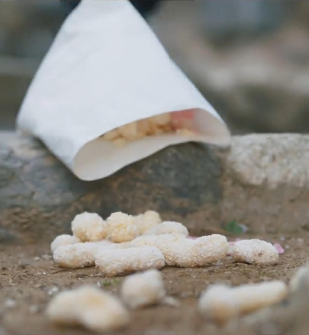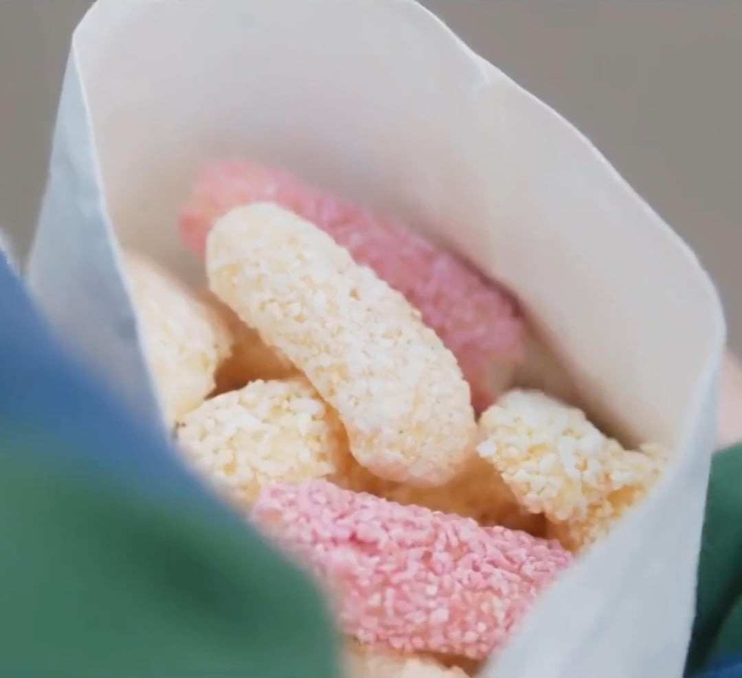 강정 (gangjeong), or a type of 한과 (traditional Korean snack). It’s a crunchy rice puff snack that’s slightly sweet and can be flavored in various ways!