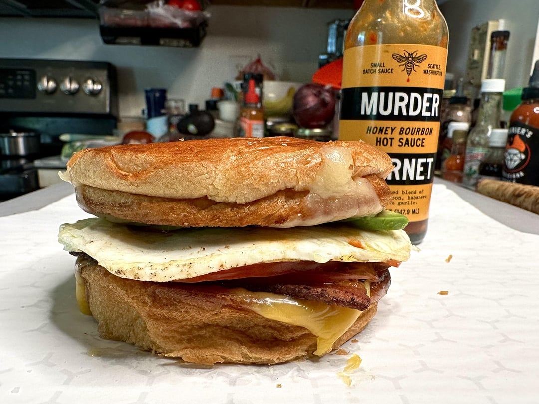Over medium egg, American and Caramelized Onion Jack cheeses, bacon, tomato, avocado, and hot sauce on a buttered and griddled Croissant bun.by No_Pattern3088 3 Comments outofyourelementdon 1 year ago Wow that looks immaculate Sufficient_Ride_2505 1 year ago  Hollywood_Punk 1 year ago I always forget about the murder hornet storyline. That one just sort of trailed off early in 2020.Write A CommentYou must be logged in to post a comment.