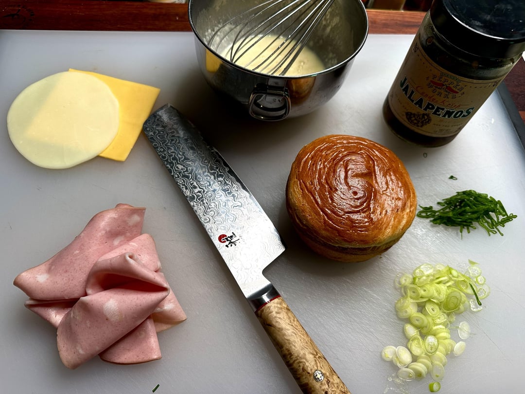 [Homemade] Mortadella, egg, and cheese breakfast sandwich