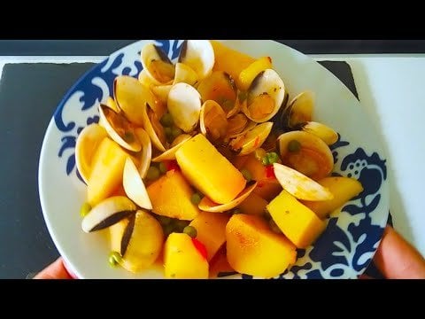 Stewed Potatoes with Clams Recipe by HomeCookingSpain 1 Comment HomeCookingSpain 2 years ago Stewed Potatoes with Clams Recipe.🧾Ingredients for 2 People:.1Kg Frozen Clams600g Potatoes100g PeasRed Peppers3 Tbsp Fried Tomato Sauce500ml Water1 Fish Stock Cube1 Tsp Sweet PaprikaGarlic PowderOréganoOlive OilSalt (if needed).➡️View Here: [https://youtu.be/VSF_LKKY7Ds](https://youtu.be/VSF_LKKY7Ds)Write A CommentYou must be logged in to post a comment.