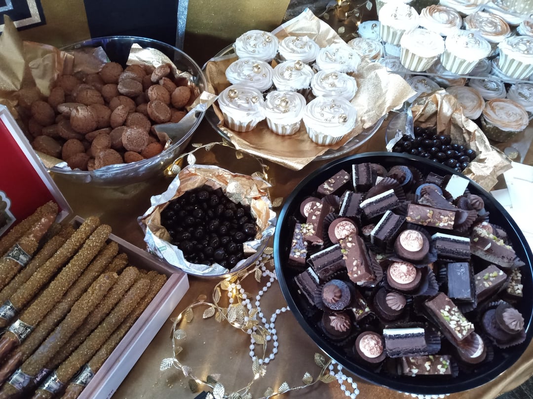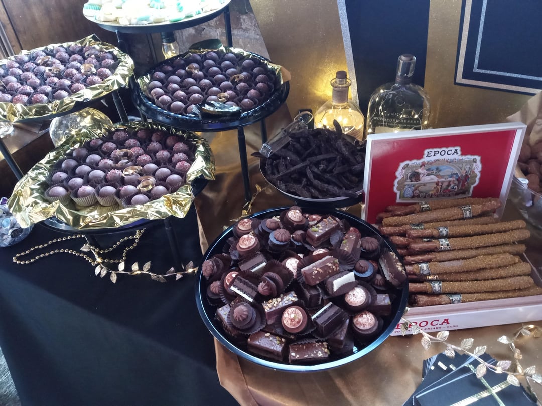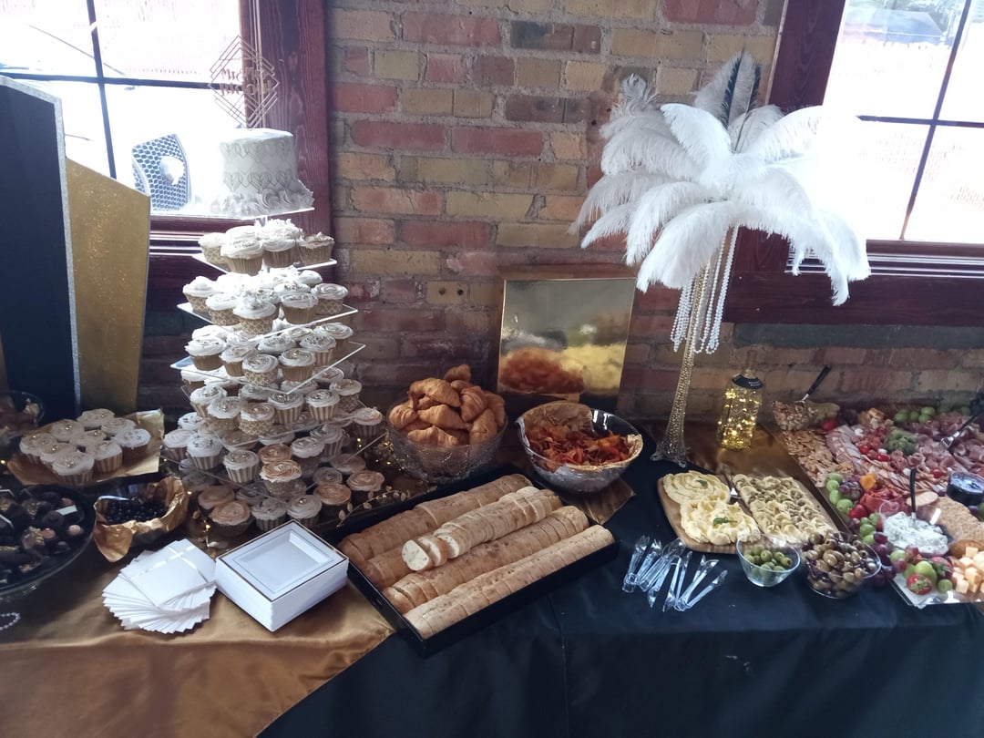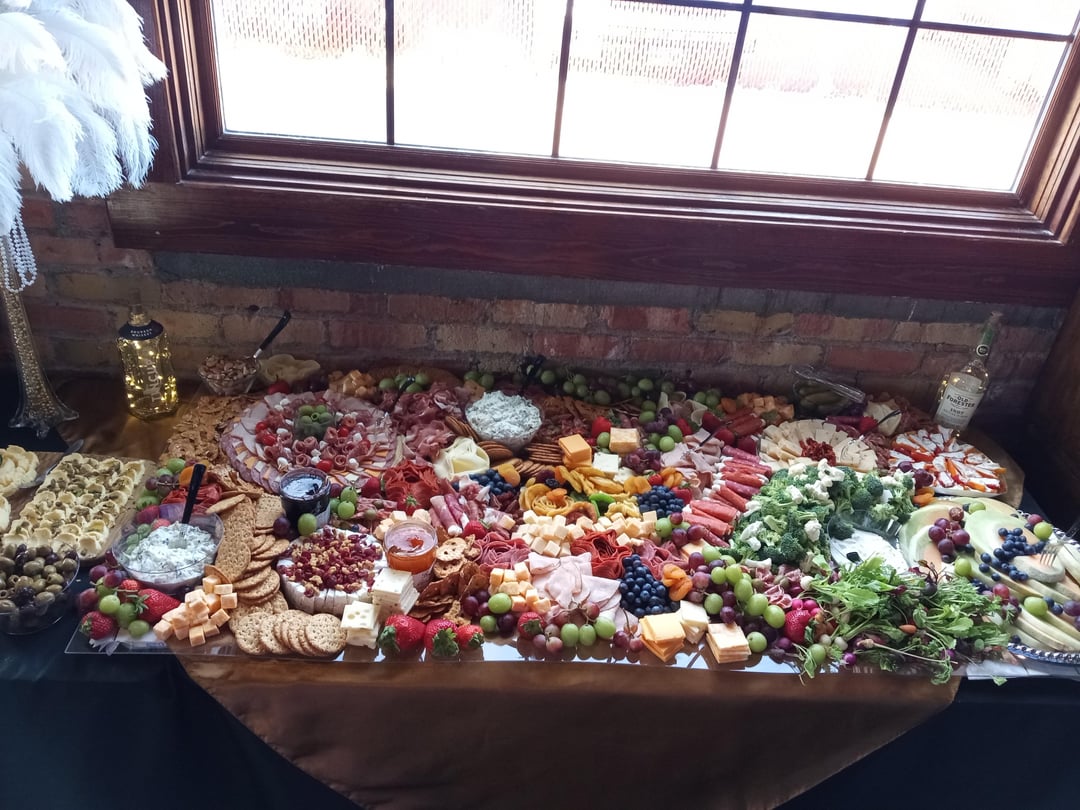 The charcuterie board was a food grade plastic, on top of a big layer of foam ice packs that don't get wobbly as they thaw and take a super long time to thaw so everything was really cold for the whole event while still looking really pretty.