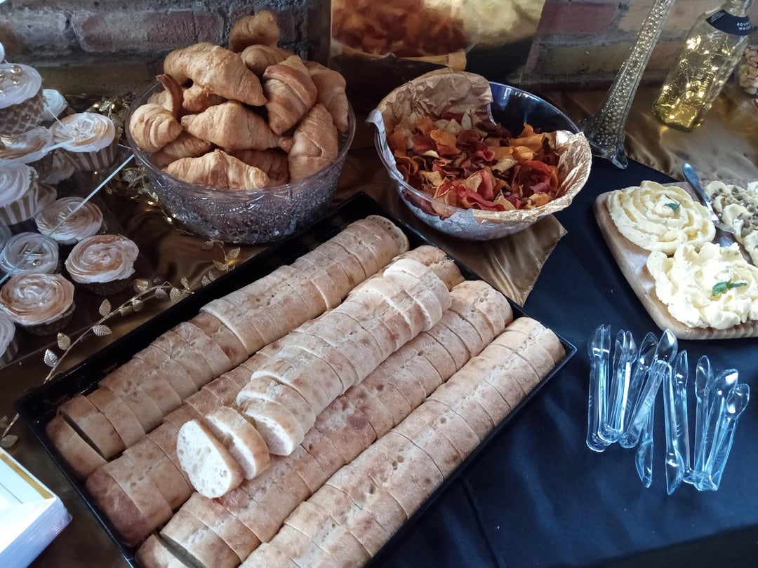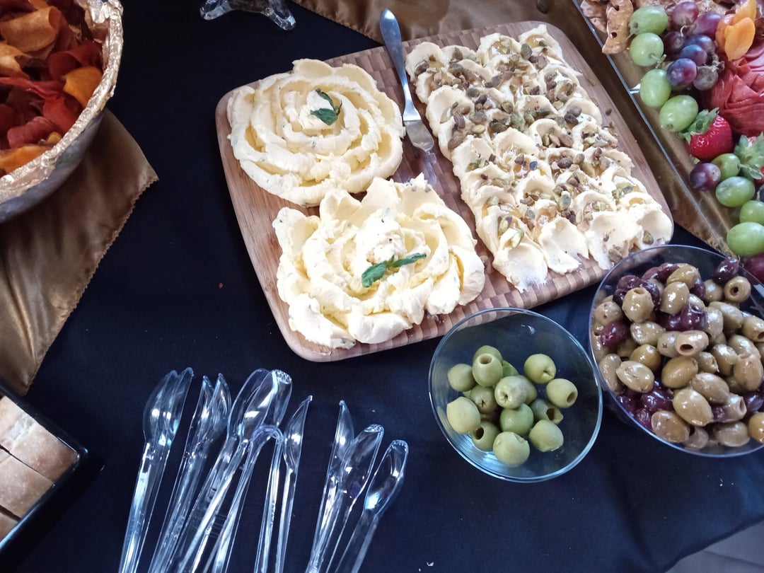 The butter board is half lemon basil and half honey pistachio with Kerry Gold butter. The room wasn't even warm enough to really let it be super spreadable which was a little strange but it was still good and people ate a lot of it.