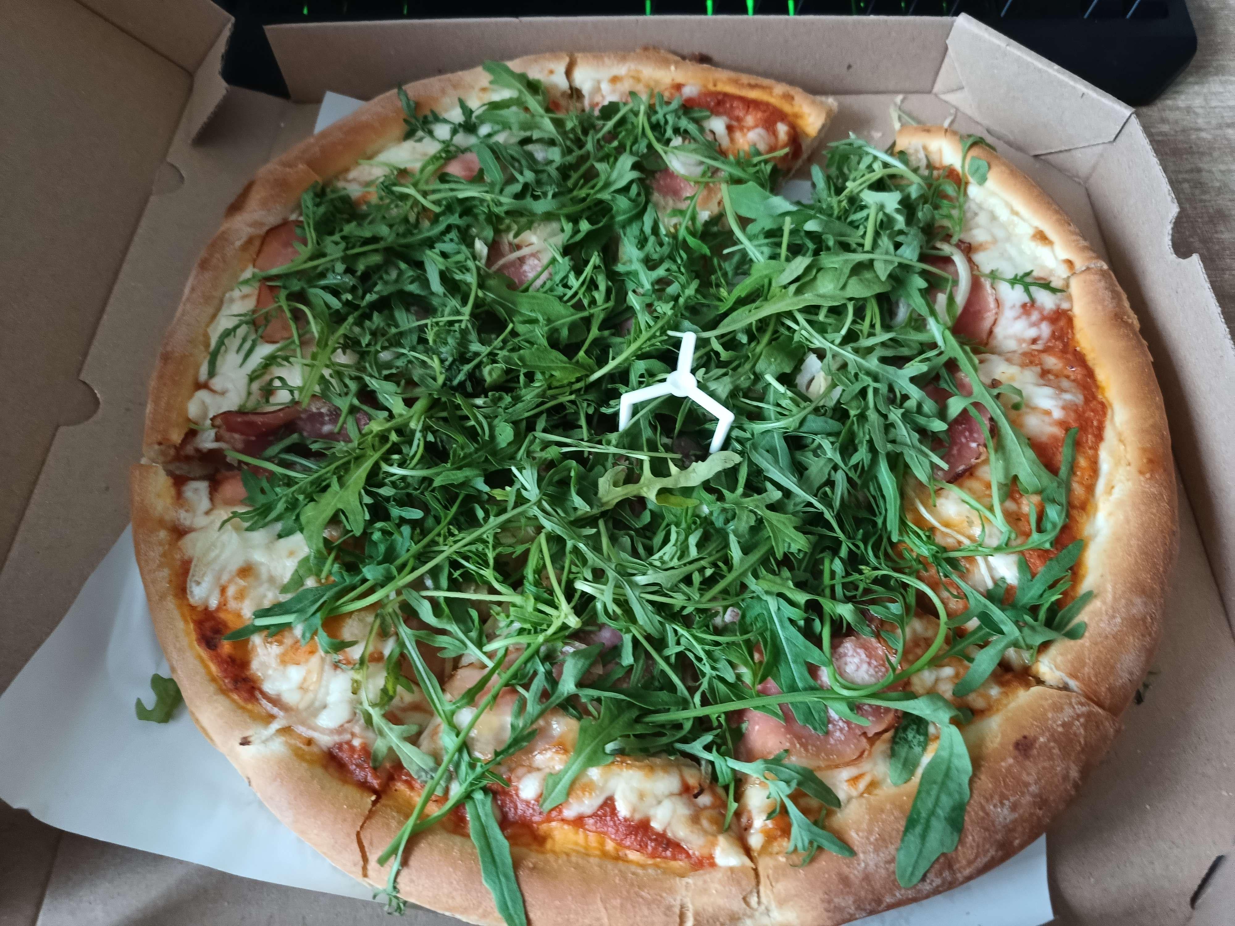 I have ordered a pizza from a nice local pizzeria with arugula, everything great but holy they gave me a whole garden I think