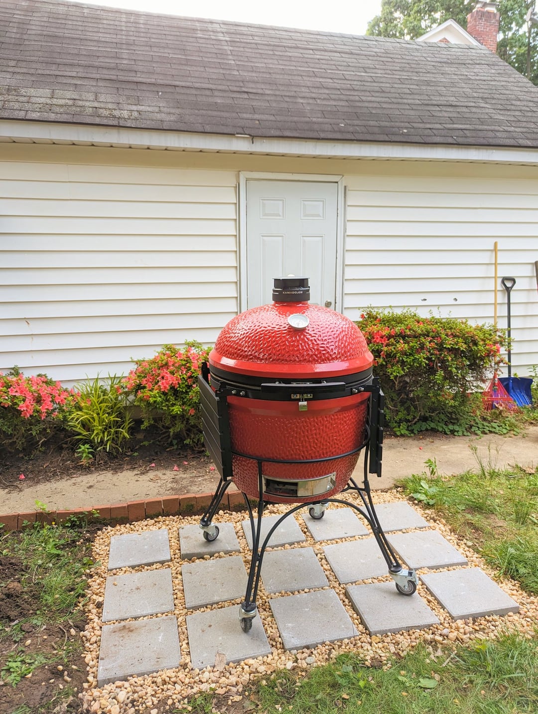 BJ2 was just sitting on our walkway for four months since I got it. Tired of having to walk around it so built this little pad in a day. I'm not the most handy guy in the world but happy with how it came out.