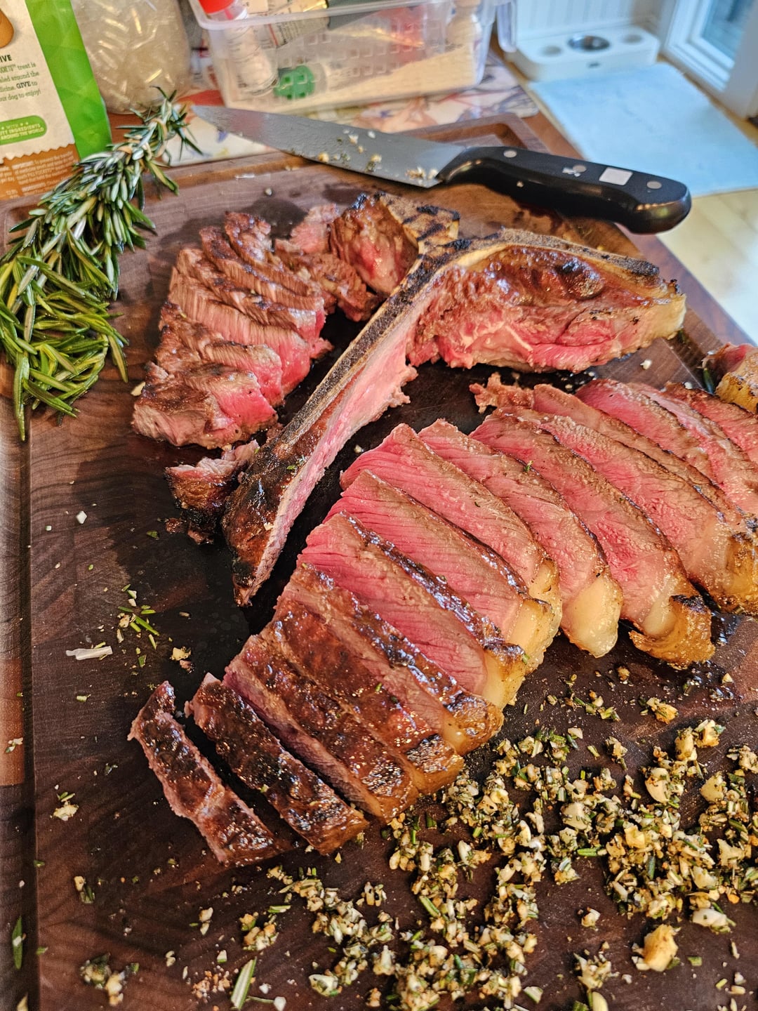 Finished with a butter/rosemary/garlic basting and "sauce".