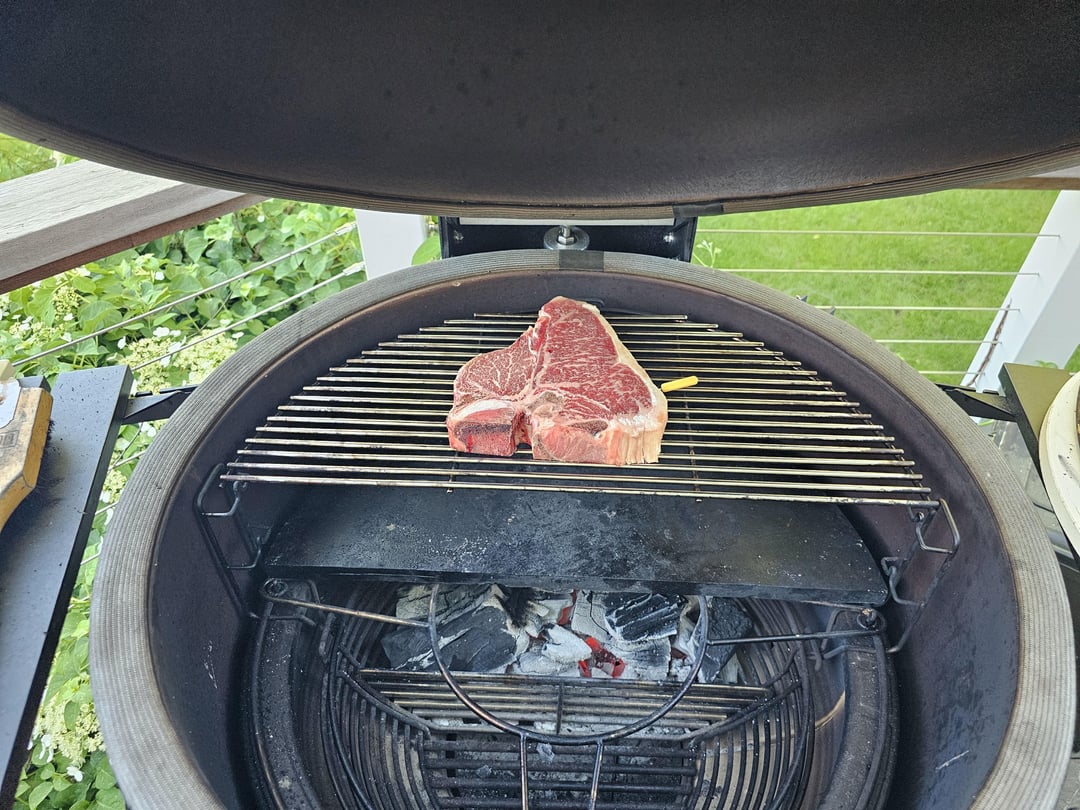 Big Joe III. Reverse seared with a little cherry wood to 100f. Rested to 110f. Grilled directly on grates in lowest position. I usually do soap stone sear, but this was good too. Came out a bit more cooked on the tenderloin side than I wanted, but still close to mid rare.