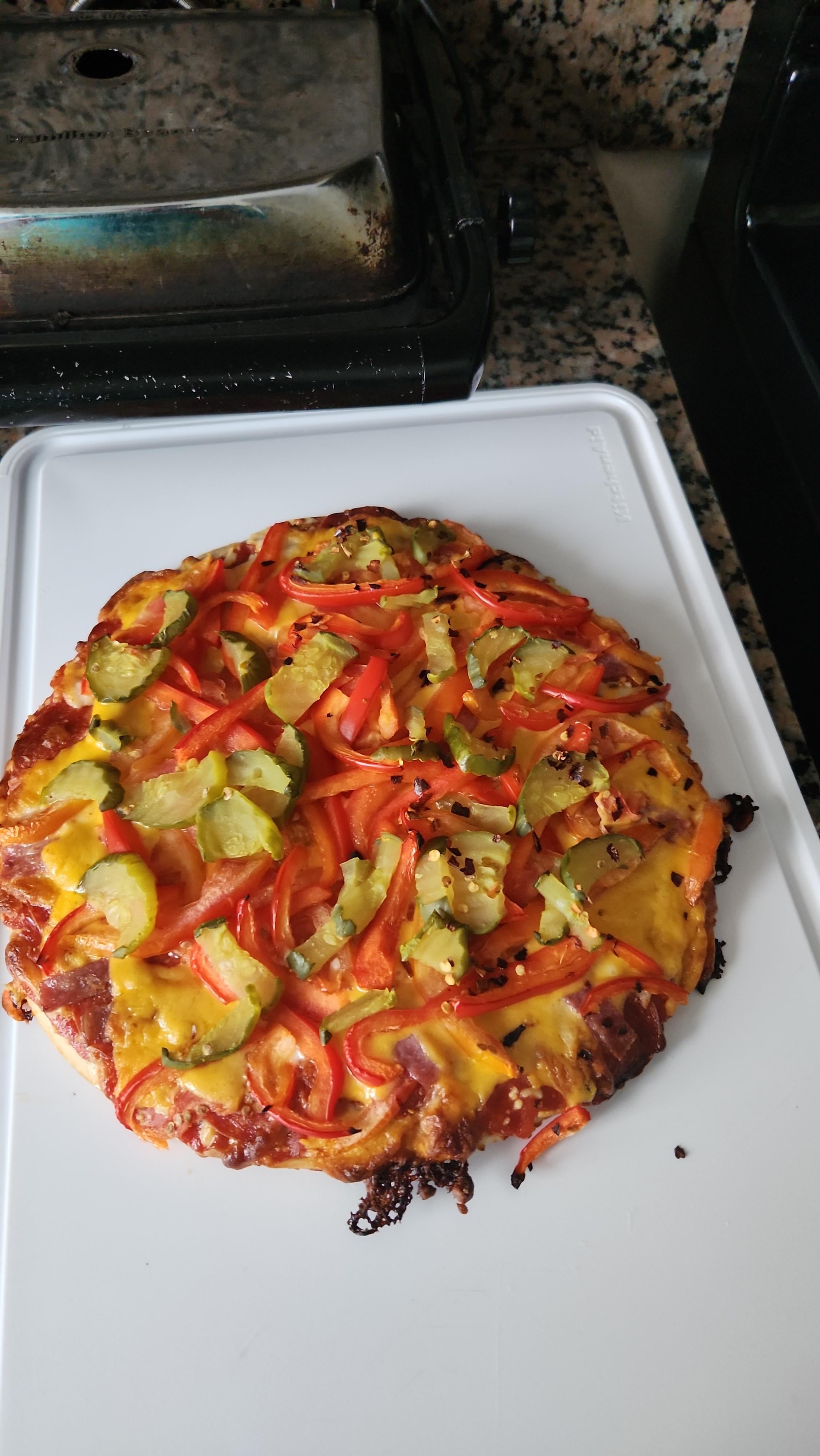 A pricesmart pepperoni pizza topped with extra peppers, Genoa salami and dill chips. Honestly, I am ashamed of my dad and apologize as a pizza loverby 0Jossle0 1 Comment Think_fast_no_faster 1 year ago I would absolutely murdalize this pizzaWrite A CommentYou must be logged in to post a comment.