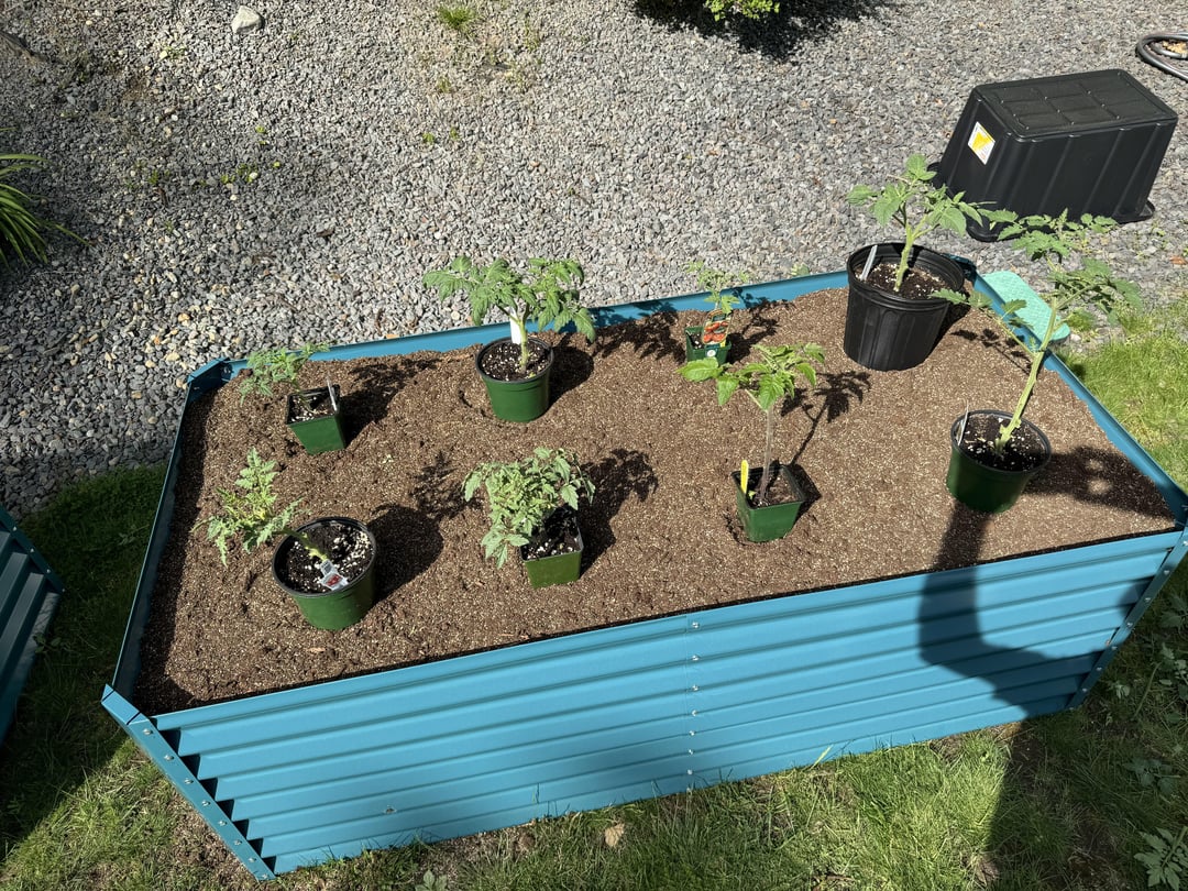 In the bed with it are: sungold, brandywine (HUGE leaves), black cherry, black krim, and better boy.