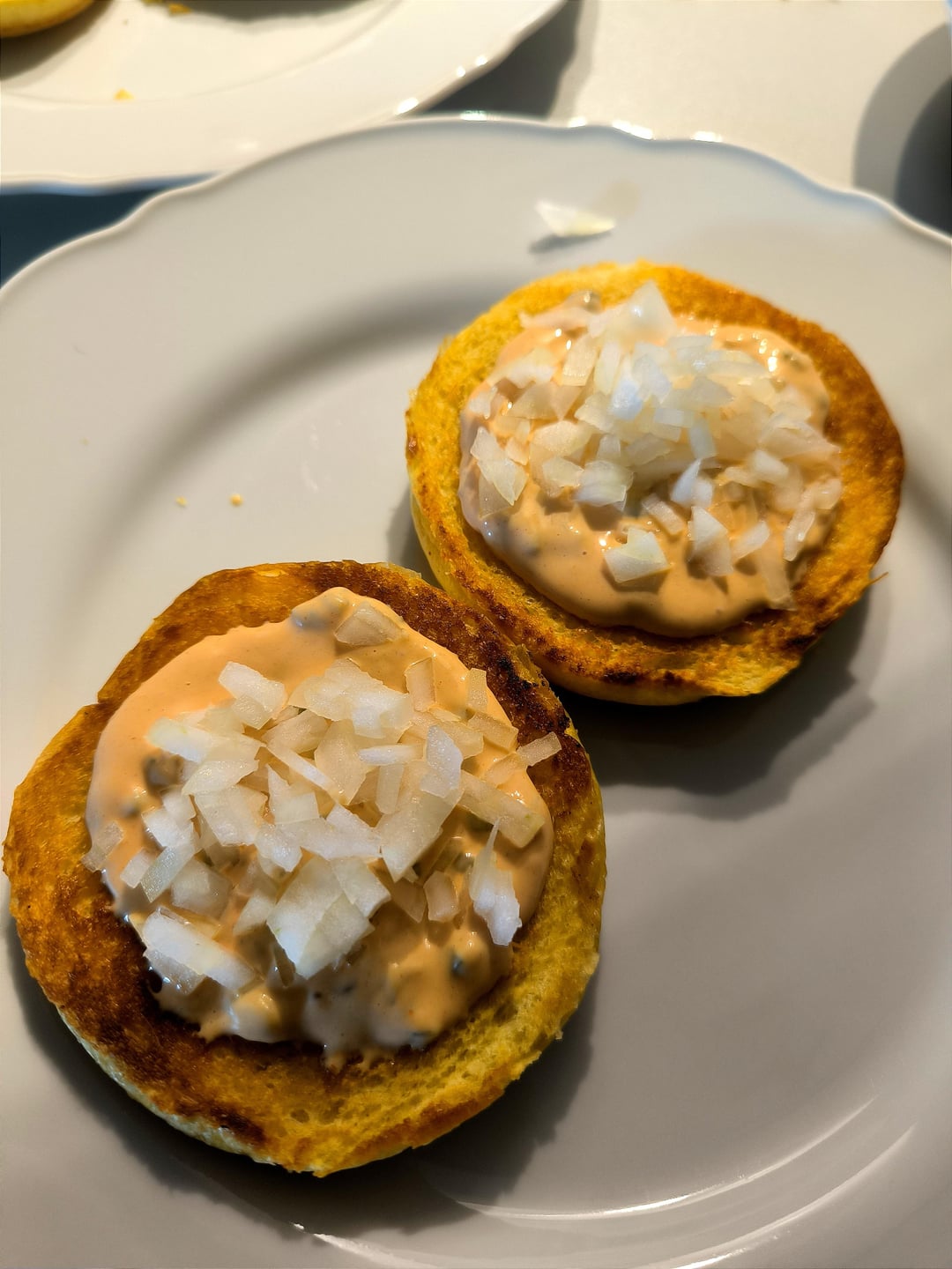 Perfection. Simple, with onions, sauce, meat, cheese and toasted buns. 10/10