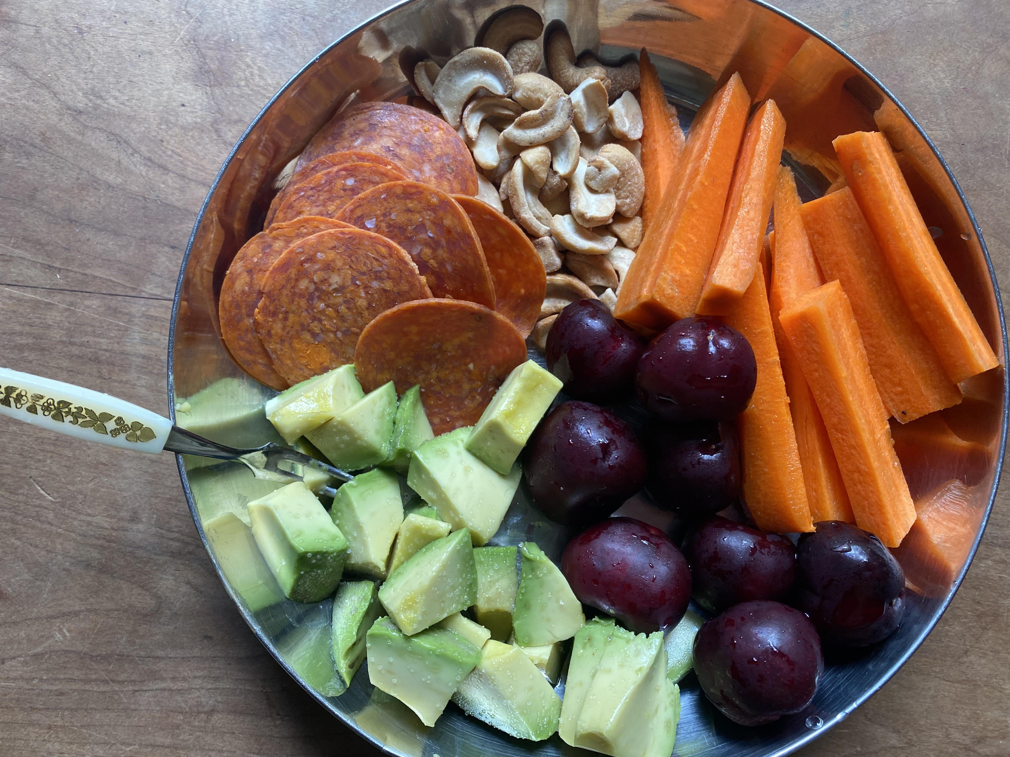 This is an iteration of my everyday lunch/snack for my child. I’ve never thought this was a charcuterie board but maybe it kinda is minus the board?