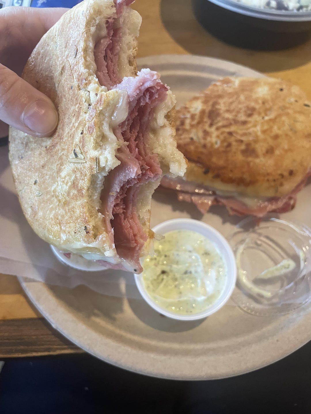 sweet ham + pastrami + salami + provolone hot pressed on focaccia, w/ a side of housemade kale-pesto ranch for dipping. by skychedelic 7 Comments Diggable_Planet 2 years ago God dang I want imyourrealdad8 2 years ago Looks yummy crazyfingersculture 2 years ago Anything godfather or godmother is usually my goto on any menu. Looks great. BaconNinja__ 2 years ago I would demolish this!! But I’d like to plus it up with some spicy red pepper relish. Slow_Possession_1454 2 years ago Is it wrong this feels like porn to me?…lol poogiewoogers 2 years ago Looks like it would be amazing with some chips emmc47 2 years ago Yesss pleeasseWrite A CommentYou must be logged in to post a comment.