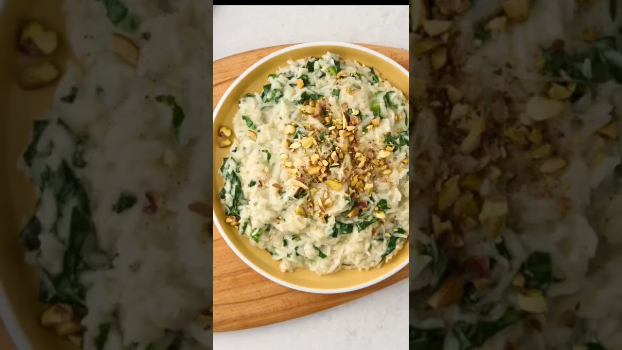 Всем привет Сегодня я хочу поделиться с вами рецептом итальянской кухни ризотто со шпинатом и сыром ризотто часто готовят и с мясом и с грибами и с морепродуктами но можно заметно облегчить блюдо если выбрать просто шпинат и сыр в качестве начинки К тому же этот рецепт очень просто вегани зру ется если заменить сыр на растительный Пармезан а сливочное масло на кокосовое о колотые фисташки сделают подачу ещё вкуснее и ароматнее приготовление промойте под проточной водой рис сполоснуть шпинат и базилик помойте и почистите репчатый лук Подготовьте глубокую сковороду с толстым дном шаг один мелко покрошить репчатый лук разогрейте в глубокой сковороде растительное масло обжарьте лук на среднем огне в течение 3 минут регулярно помешивая чтобы от лука меньше слезились глаза смочите луковицу и лезвие ножа холодной водой шаг два всыпьте в сковороду рис влейте вино перемешайте Готовьте 2 минуты шаг три по 50 мл вливайся