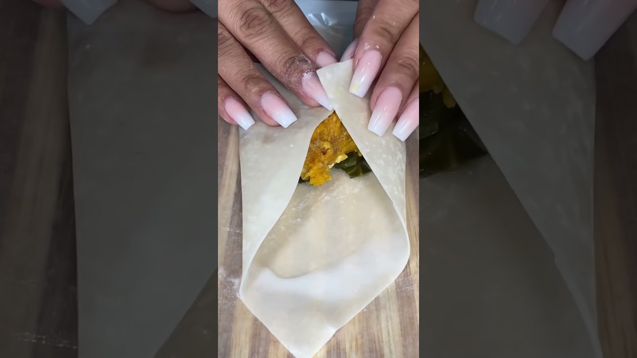 Yogi into these soul food egg rolls one thing about making soul food is that you really can’t make it in a small batch you got to make a big pot of collard greens a big tray of macaroni and cheese and then you got a bunch of leftovers sometimes and you don’t know what to do with them so we make some soul food egg rolls y’all believe me when I say that these things are so good I mean pretty much everything tastes good fried but these soul food Eggrolls are legit you guys and you know that candy yams and macaroni makes the perfect bite on your Thanksgiving plate so why not put them all together in egg roll go ahead and add all your soul food to the egg roll and you’re going to roll that bad boy up like we’re doing here tuck those sides in roll it really really tight y’all don’t worry if your egg will wrap or rips because we are going to double roll these things because we want them to be extra crispy then we had to make a dipping sauce I made it with some cranberry sauce and some hot sauce get into it and you know I got you the full recipe is on the site enjoy