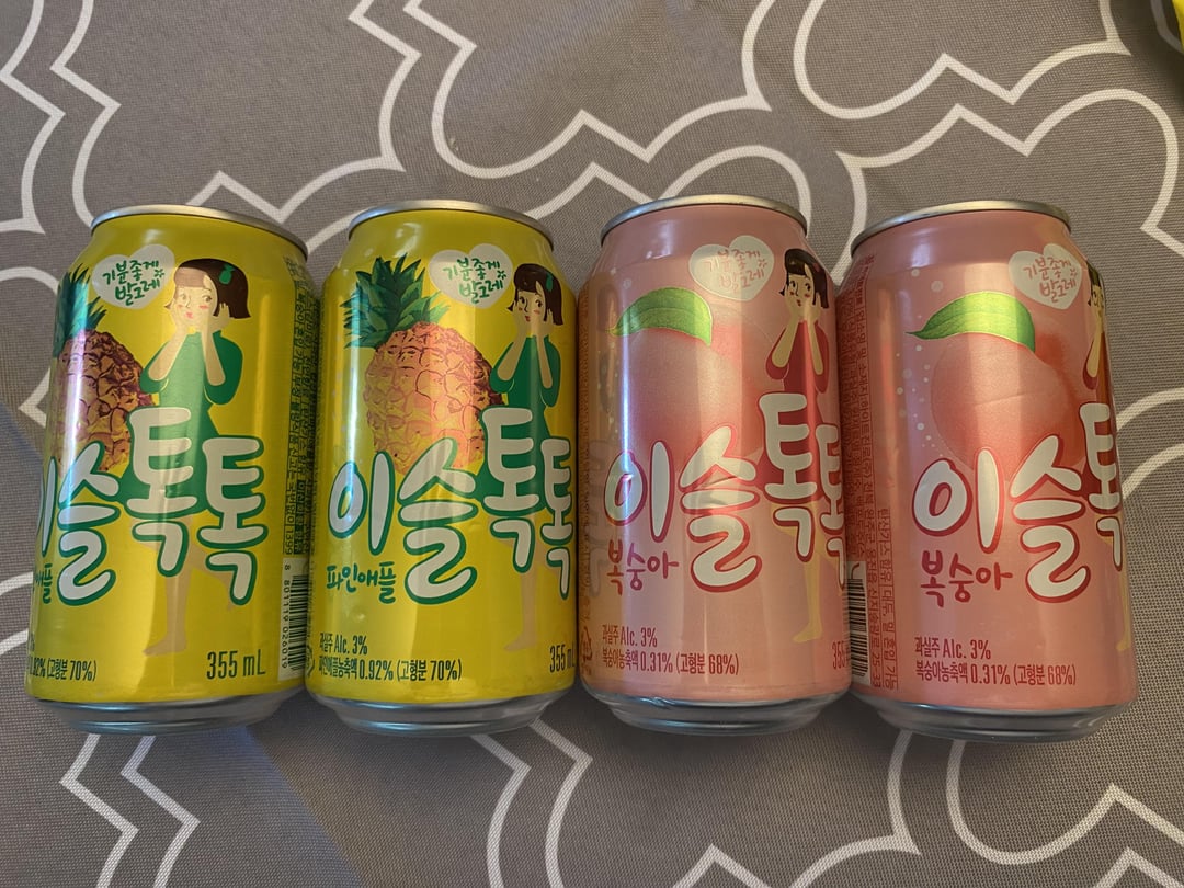 The flavours of the drinks are the pictured fruits on the cans. It probably like a flavoured hard seltzer, it seems to have soju because 이슬 is dew, associated with soju