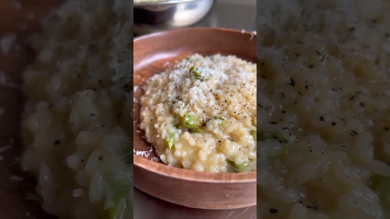 Asparagus lemon risotto recipe: 4 tbsps olive oil 1 onion chopped 3 garlic cloves smashed Zest of one lemon 8 asparagus roughly chopped 1 tbsp lemon juice 4-5 cups chicken stock 1 cup short grain rice, washed properly 1 tsp salt (taste and add gradually if needed) 4 tosp butter 1/2 cup shredded parmesan cheese Sauté the onion, garlic, and lemon zest in the olive oil until translucent. Add the chopped asparagus and cook for another minute. Add the rice and salt, and sauté for another minute. In the meantime, heat your chicken stock in a separate pot. Add the chicken stock 2 ladles at a time to the rice and keep stirring it around. Once the rice absorbs the stock, add another 2 ladles of chicken stock. Keep stirring the rice and add the chicken stock gradually until the rice is properly cooked. Add in the lemon juice, butter, and parmesan and mix until the butter and cheese melt & serve.