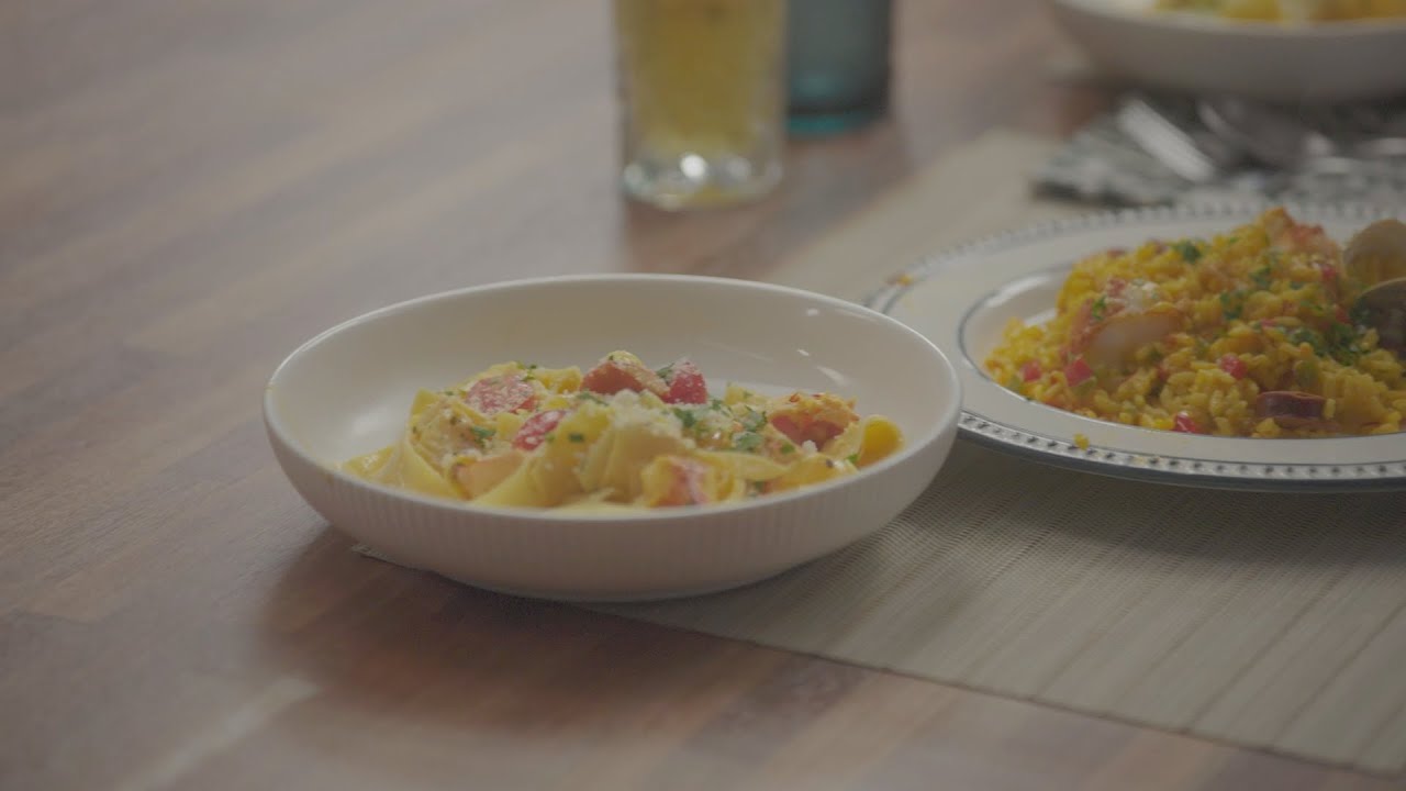 Pasta with cream sauce may not be an obvious summer dinner idea, but Emeril’s Lobster and Pappardelle with Saffron Cream Sauce is light and delicate enough to serve on a hot summer night. Top it off with his Citirus and Saffron Olive Oil Cake for a delicious saffron-themed meal. The recipes were a big hit with saffron farmer Karl McDonald and chef Pooja Hegde on a recent episode of Emeril Cooks.