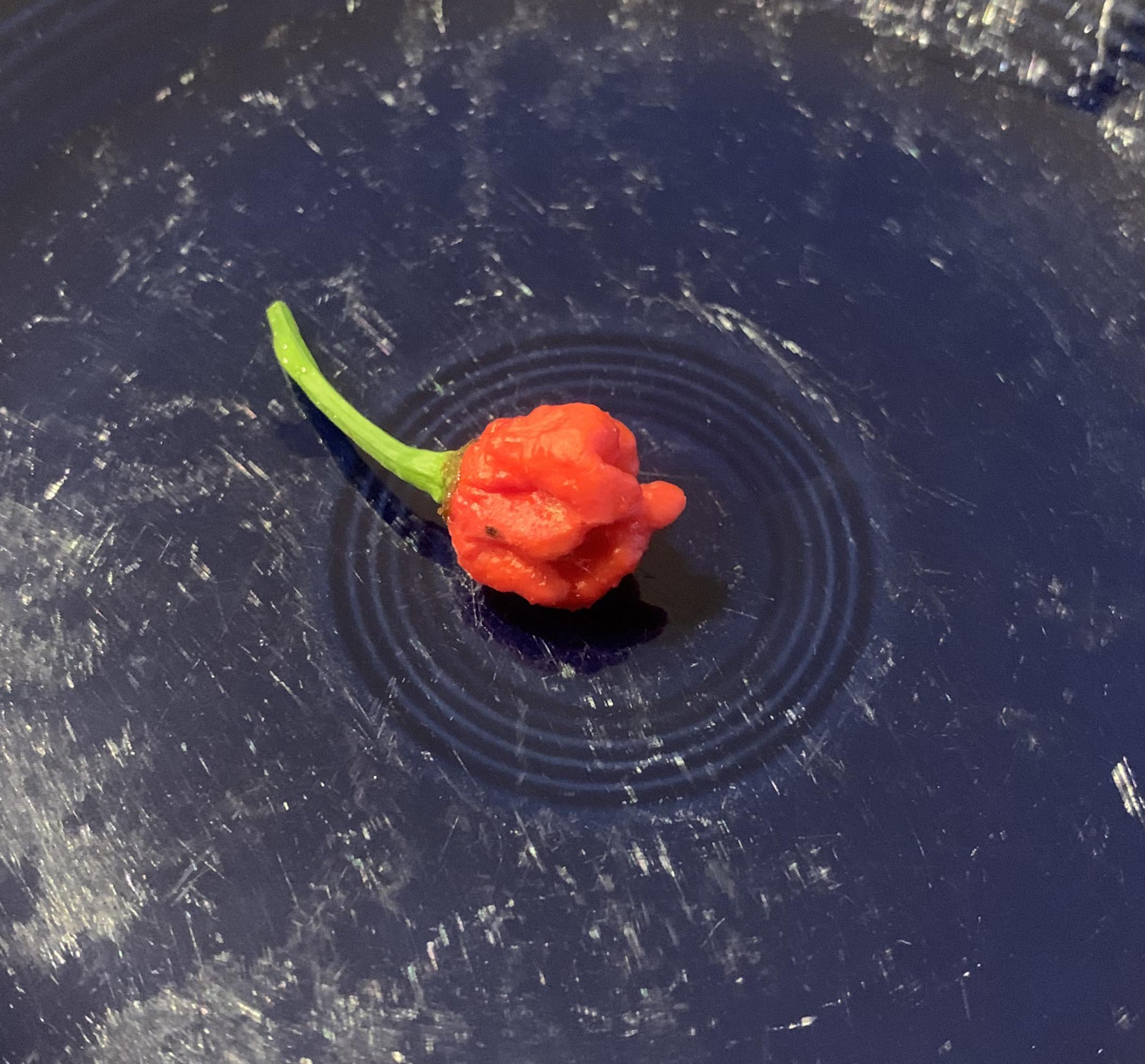 It’s my first ghost pepper. All the others on my plant are much bigger, but still green. Decided to harvest this one before it went to waste.